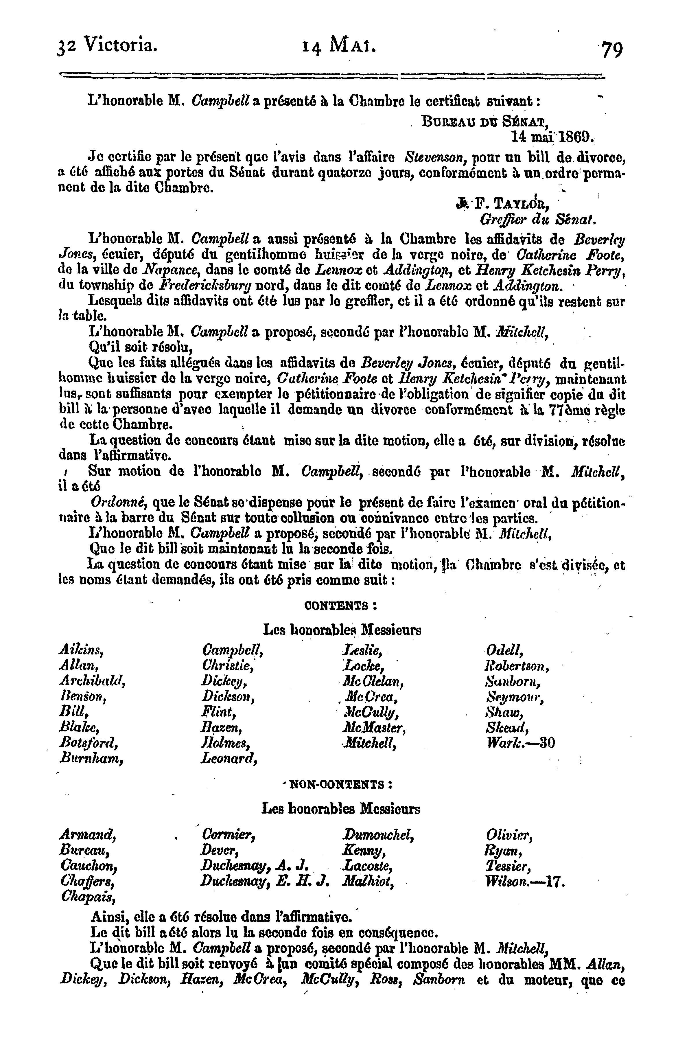 « Journaux du Sénat, 1re Législature, 2e Session