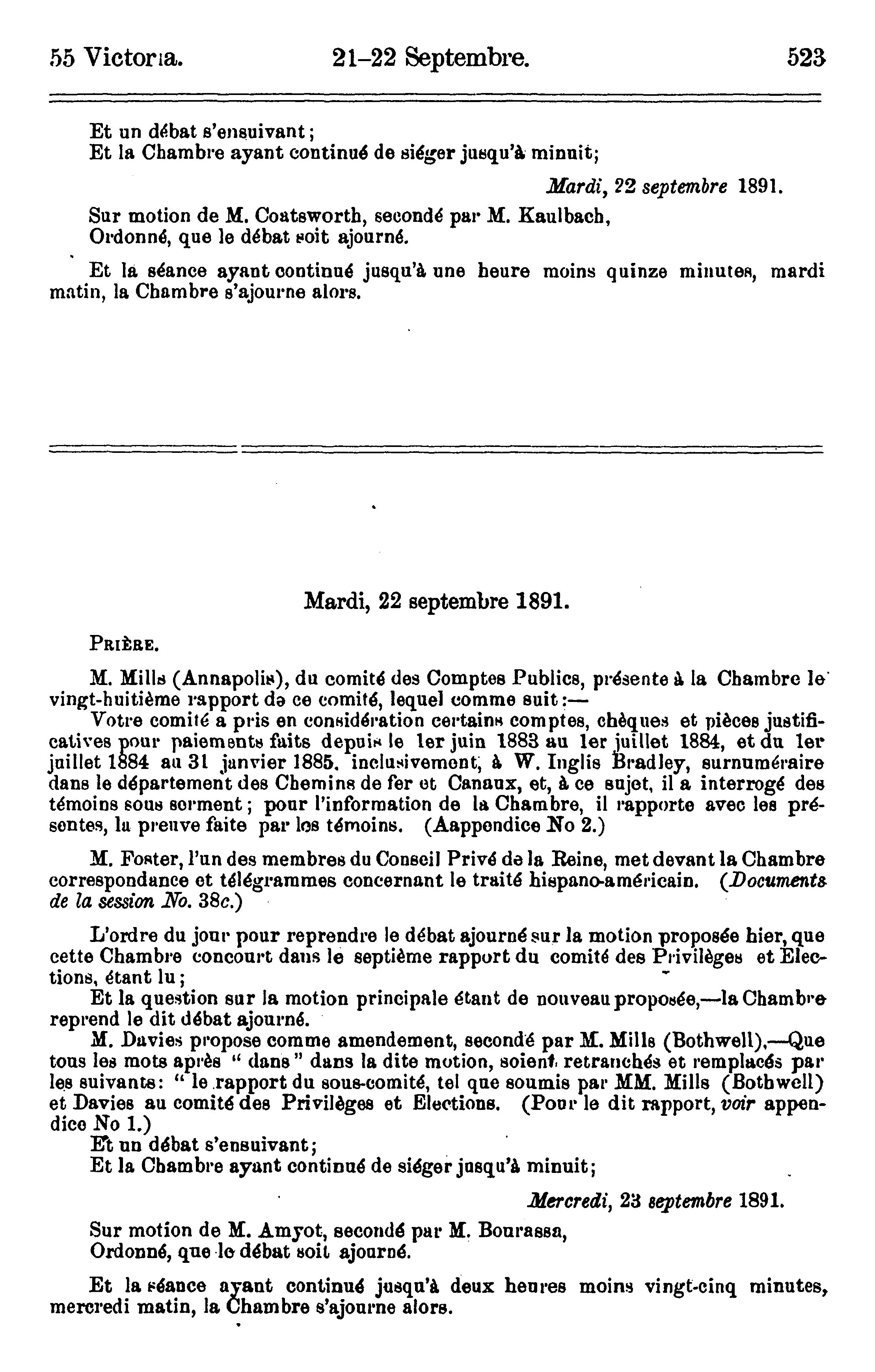 Macdonald, John Alexander (1891-04-29 - 1891-06-06), Abbott, John Joseph Caldwell (1891-06-16 - 1891-09-30)