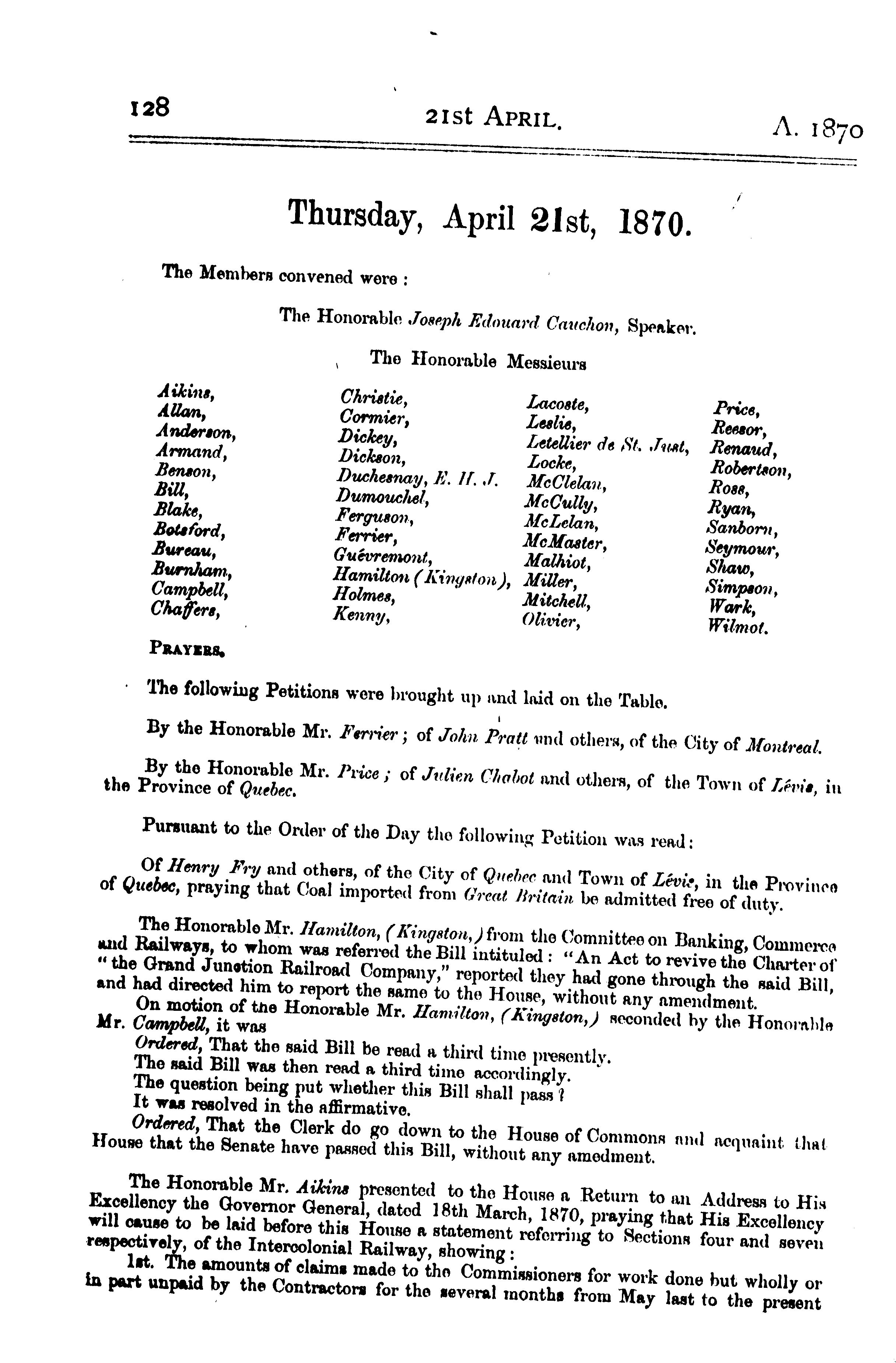 « Senate Journals, 1st Parliament, 3rd Session