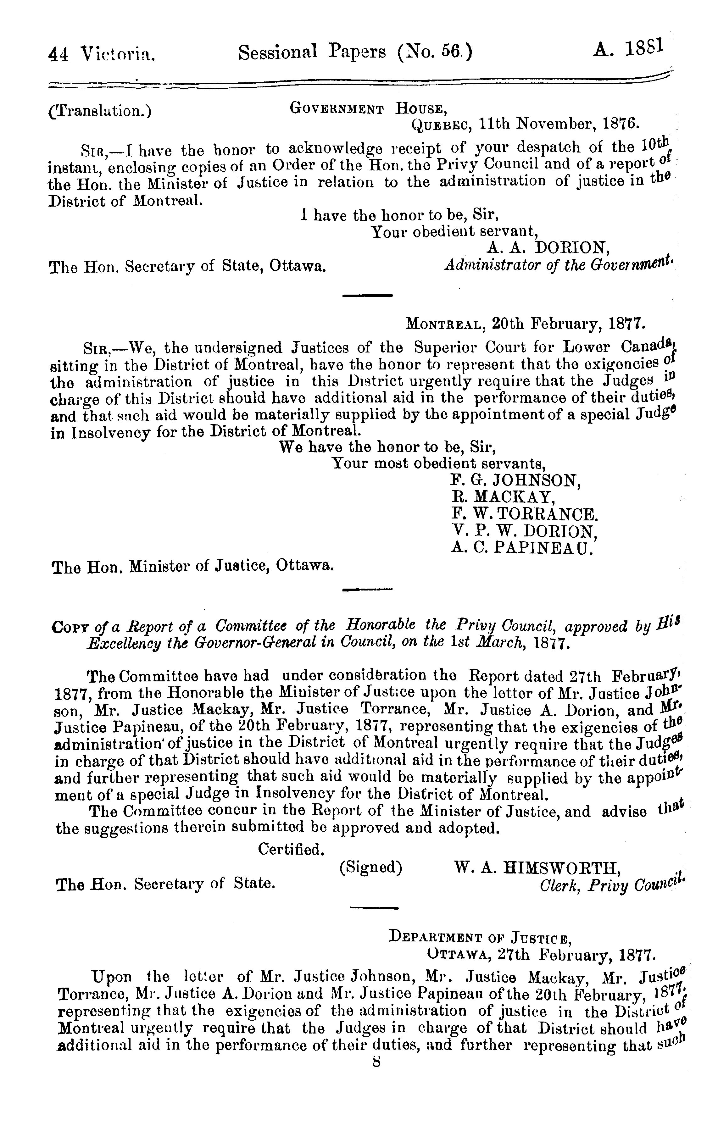 « Sessional Papers, 4th Parliament, 3rd Session