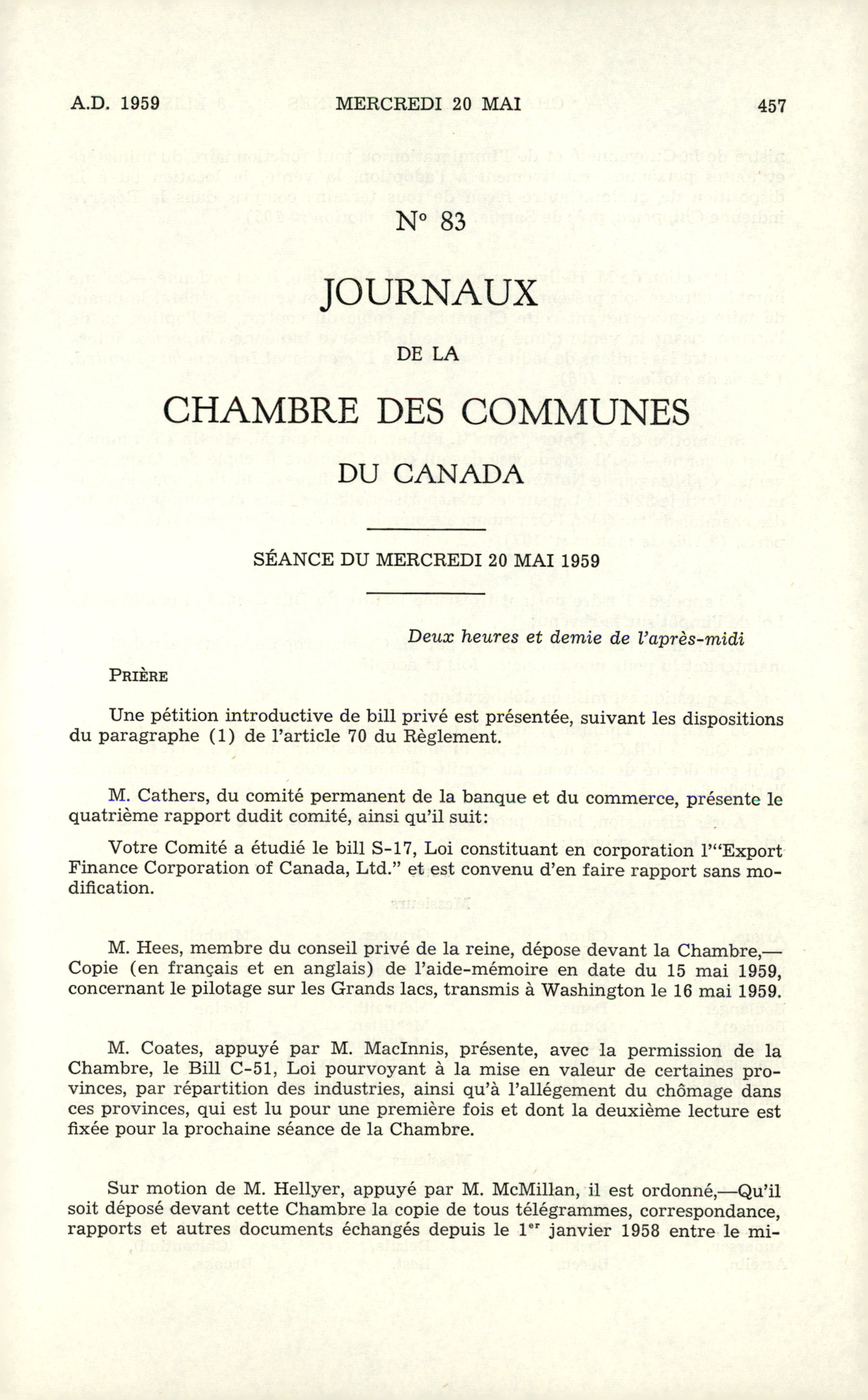 Journaux de la Chambre des communes, 24e Législature, 2e Session : Vol. 105