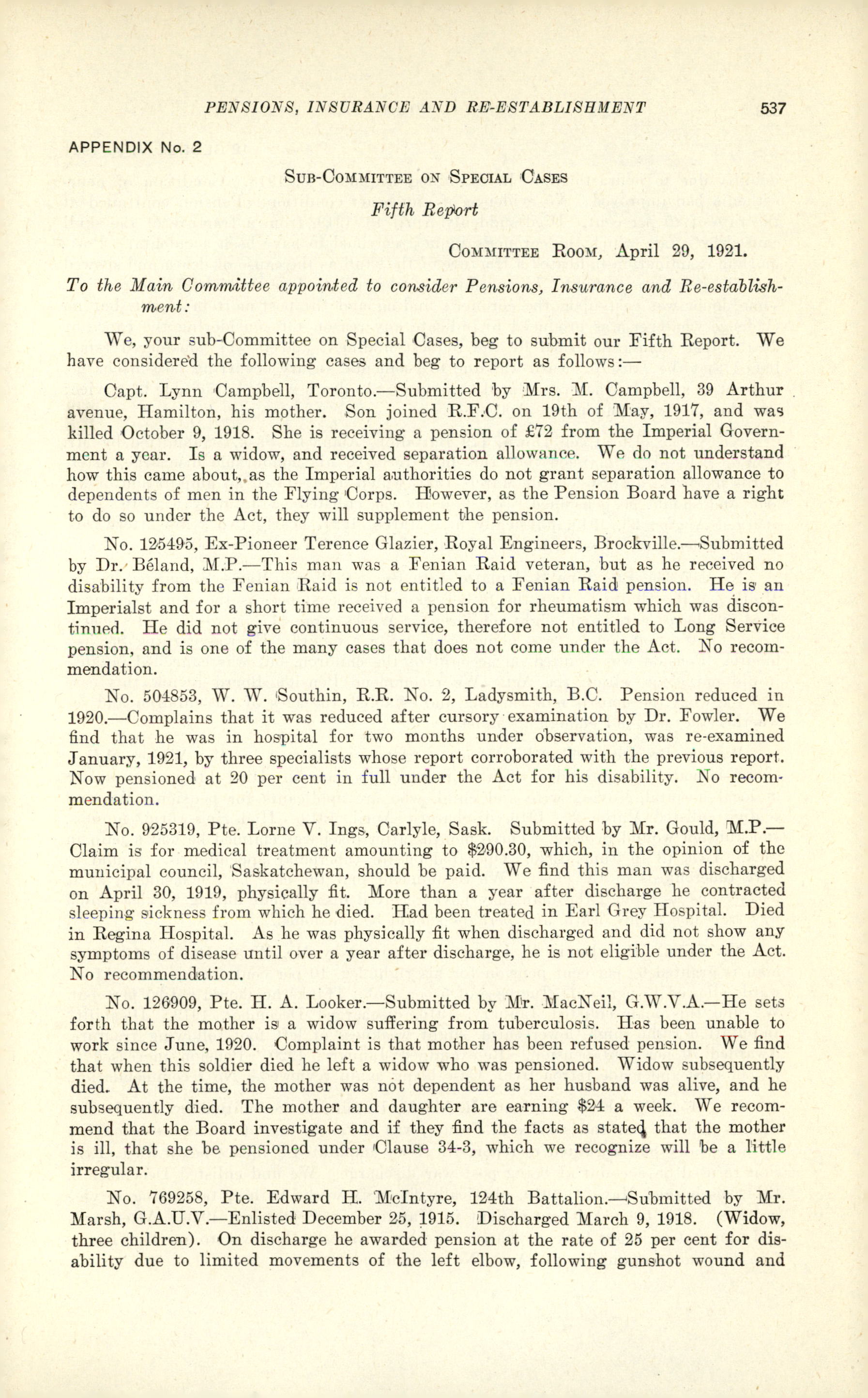 House of Commons Journals, 13th Parliament, 5th Session : Vol. 58 App. 1
