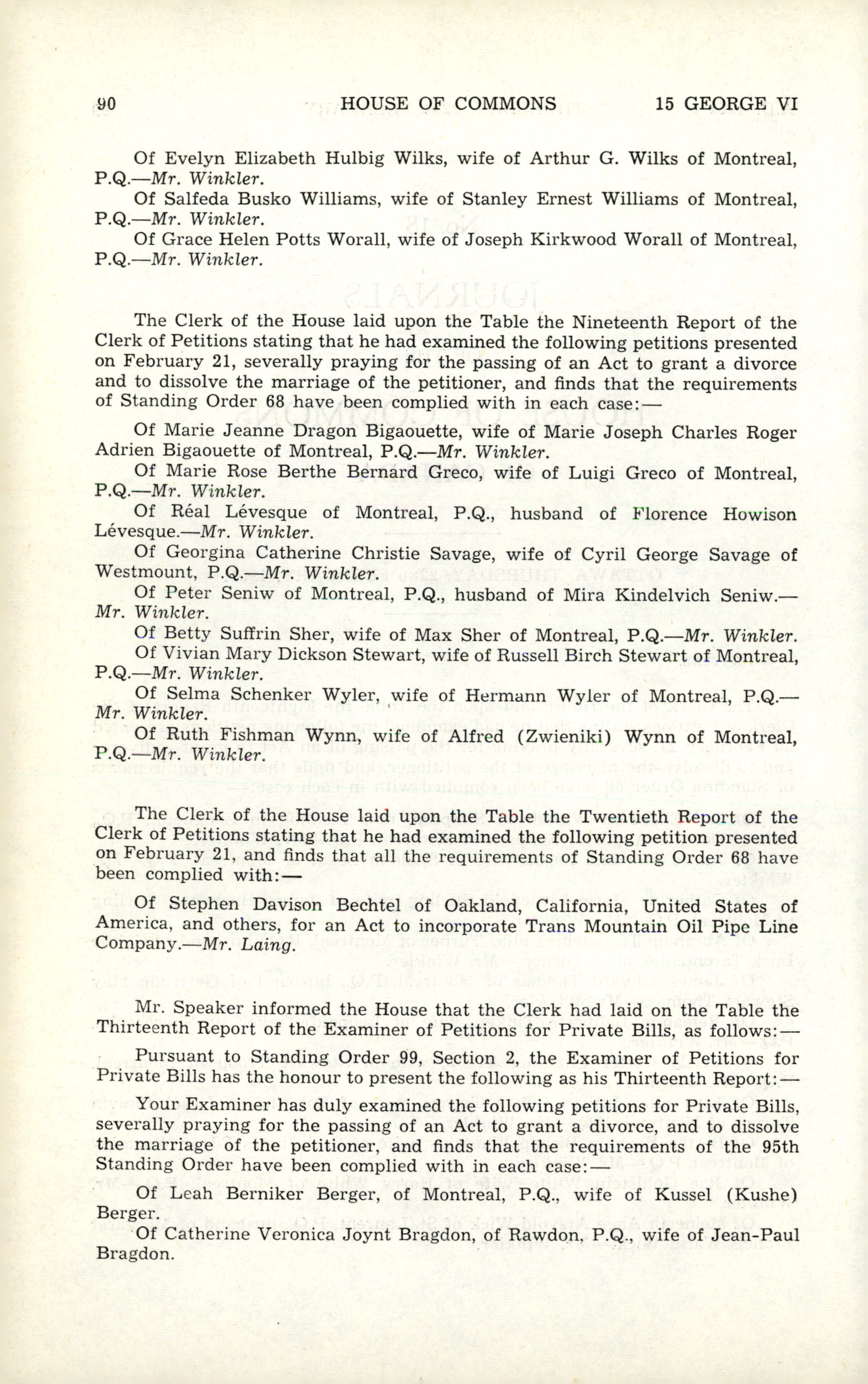 « House of Commons Journals, 21st Parliament, 4th Session