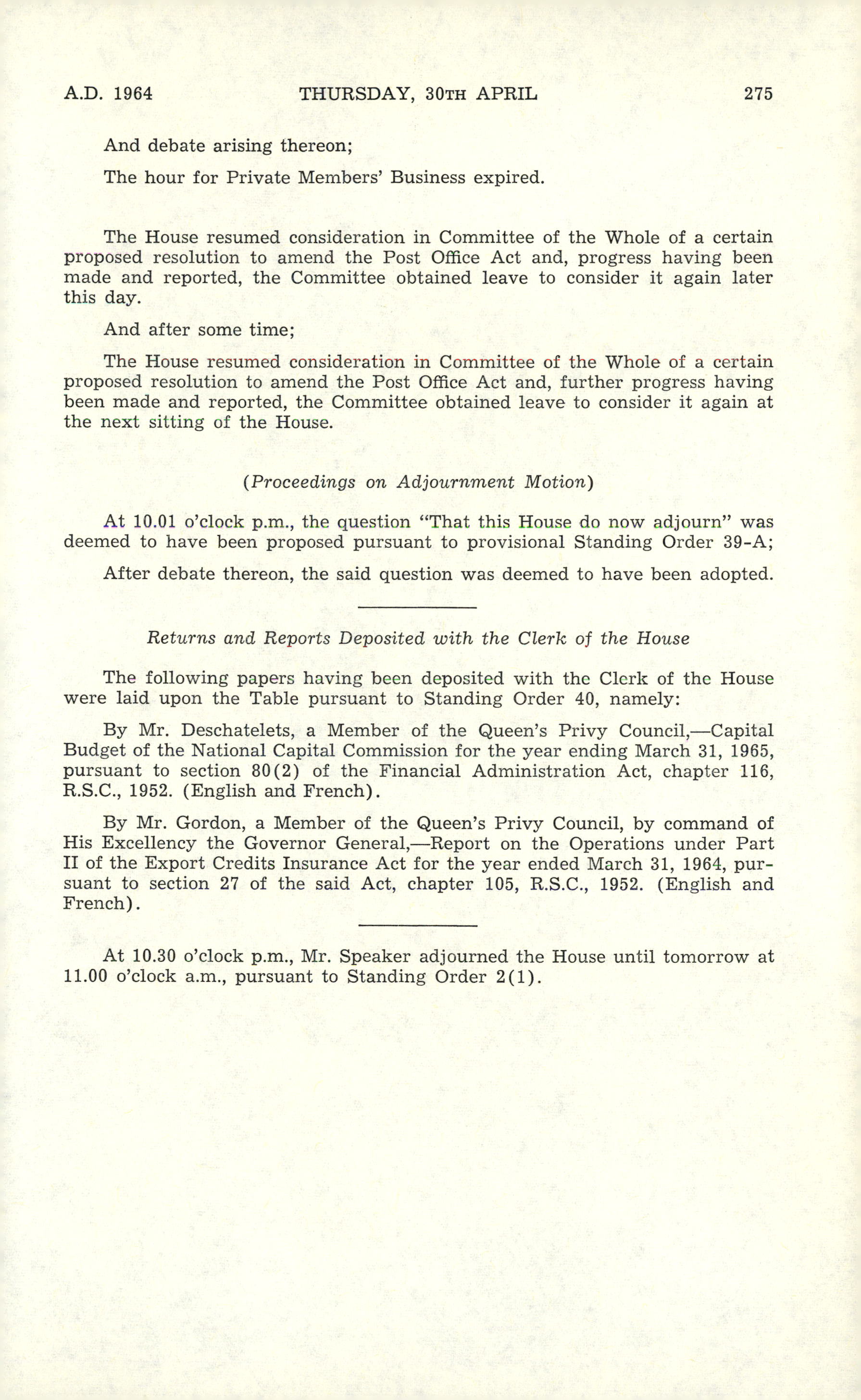 « House of Commons Journals, 26th Parliament, 2nd Session