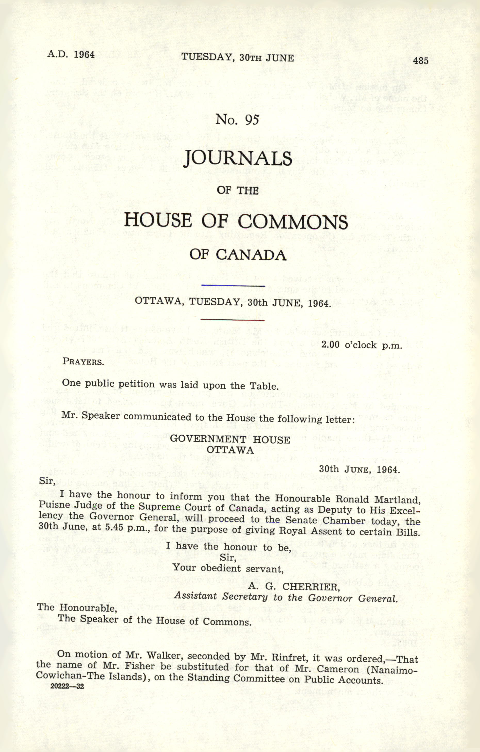 « House of Commons Journals, 26th Parliament, 2nd Session
