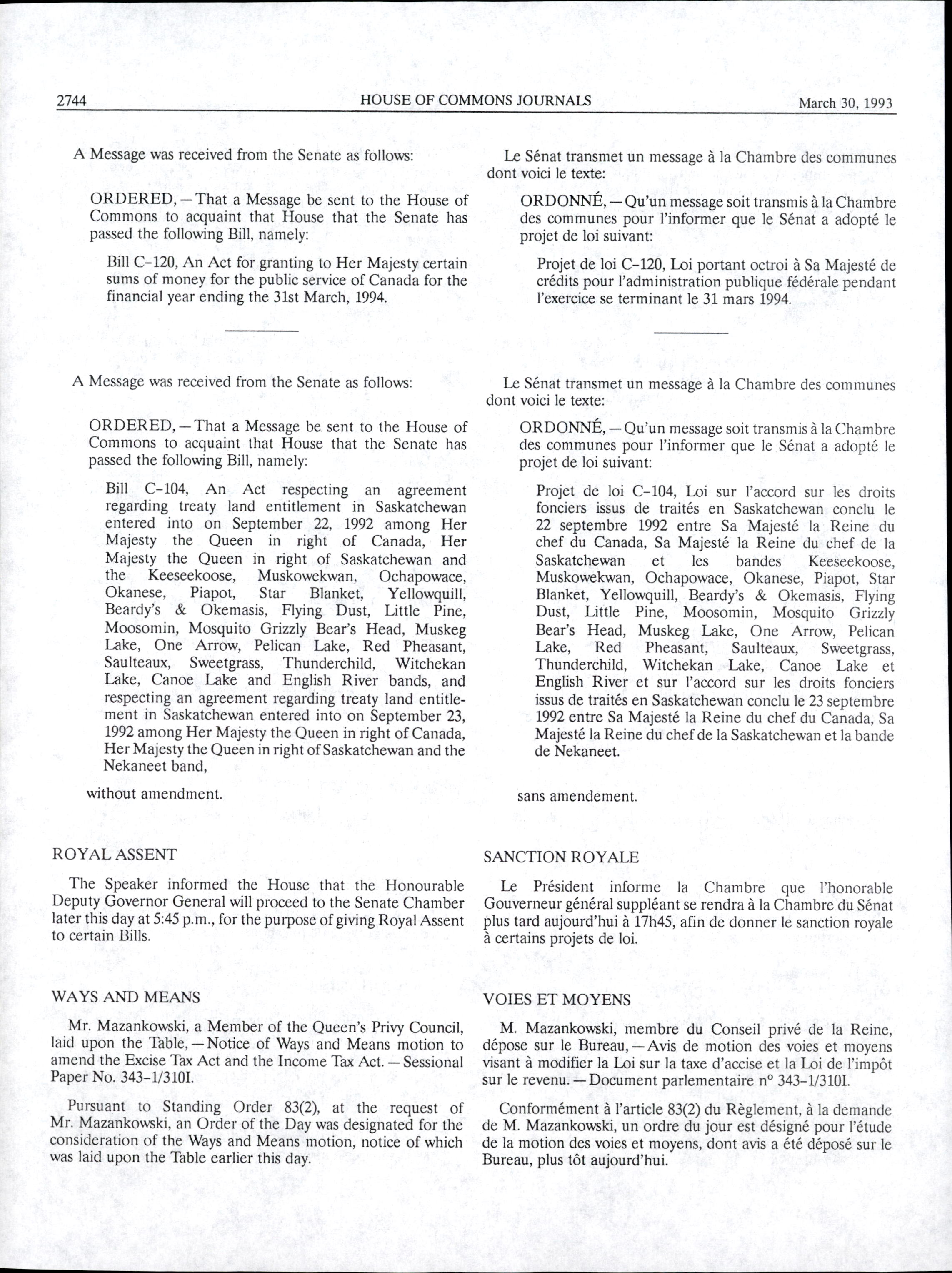 « House of Commons Journals, 34th Parliament, 3rd Session