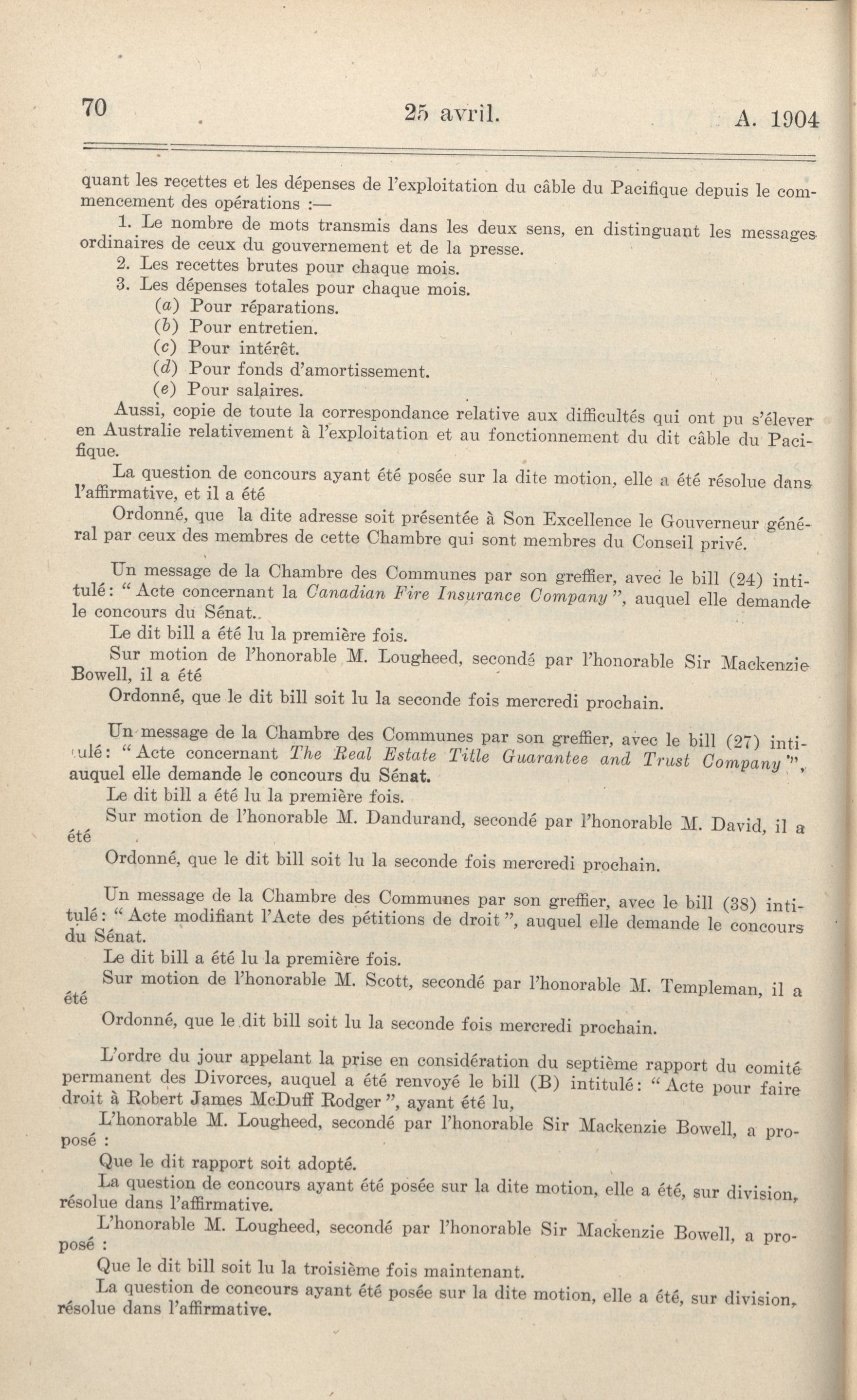 Journaux du Sénat, 9e Législature, 4e Session : Vol. 39