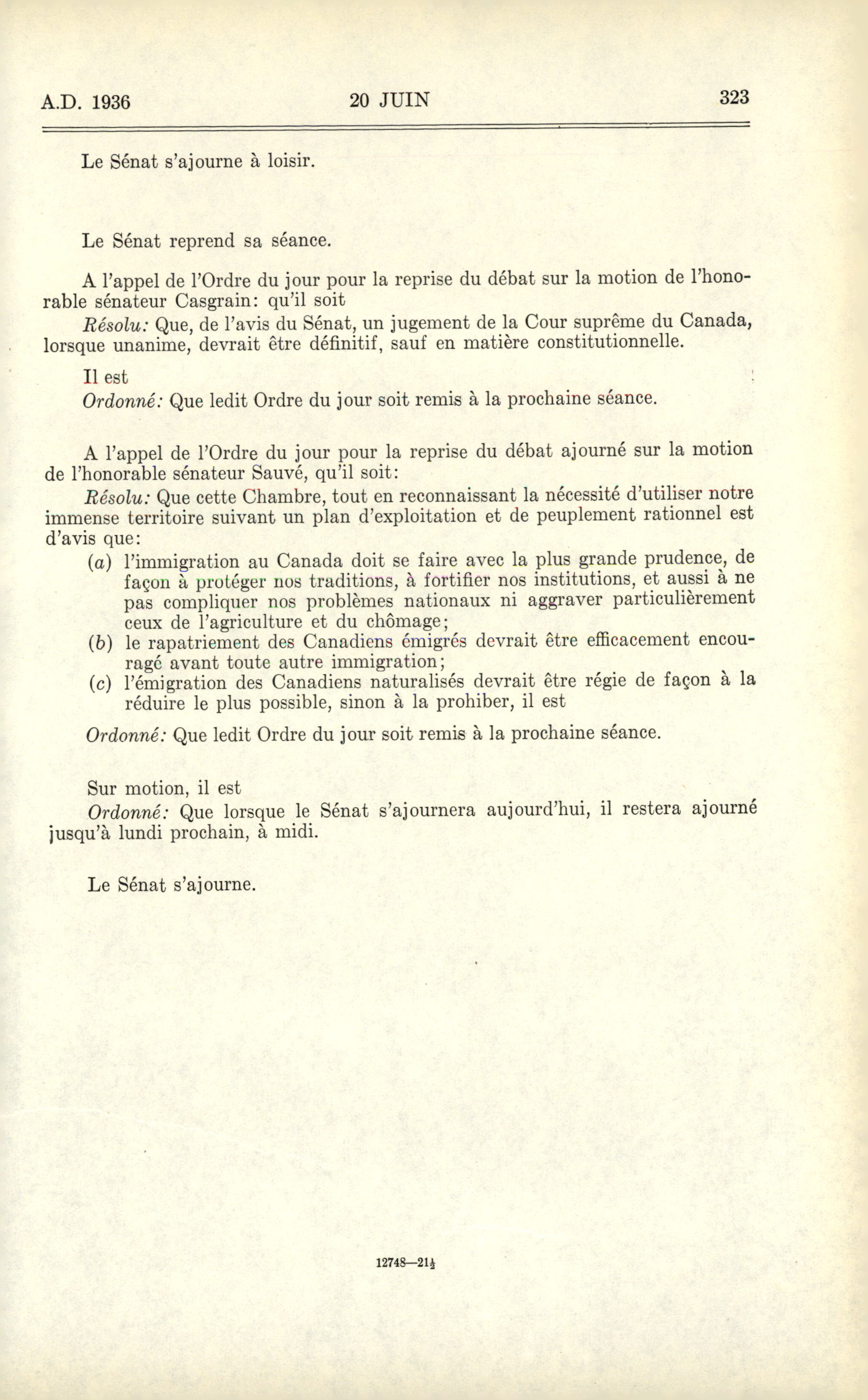 Journaux du Sénat, 18e Législature, 1re Session : Vol. 74