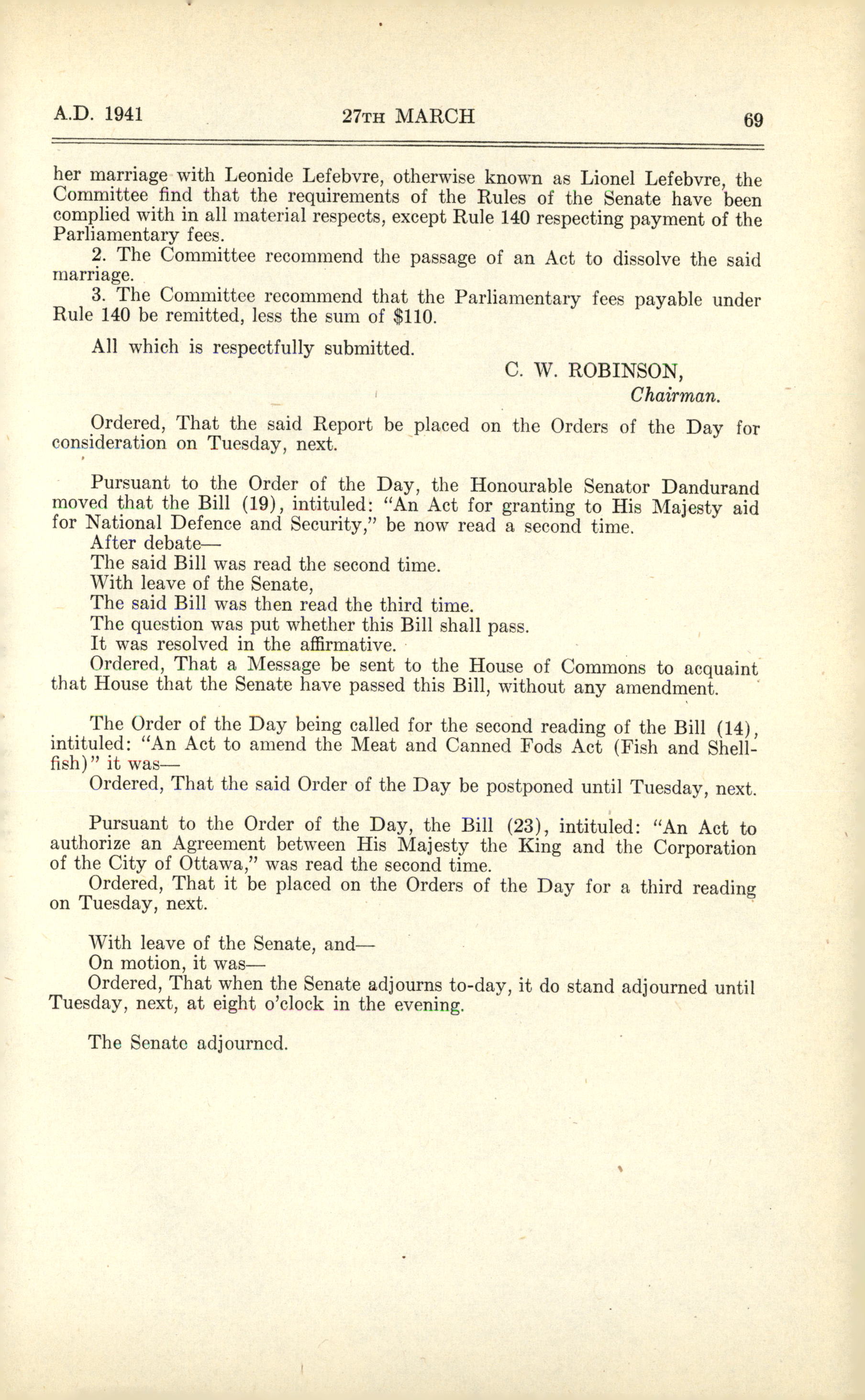 « Senate Journals, 19th Parliament, 2nd Session