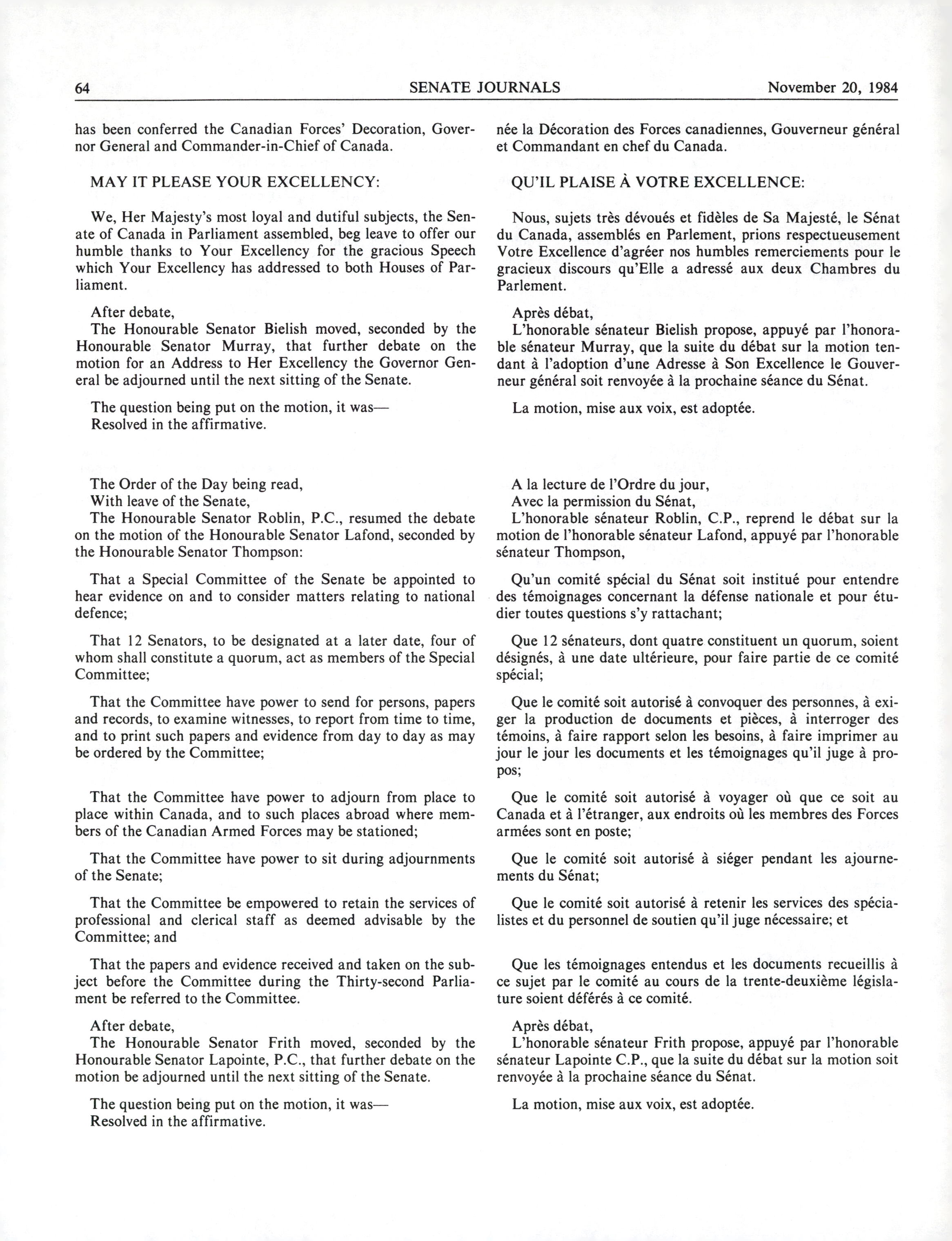 « Senate Journals, 33rd Parliament, 1st Session