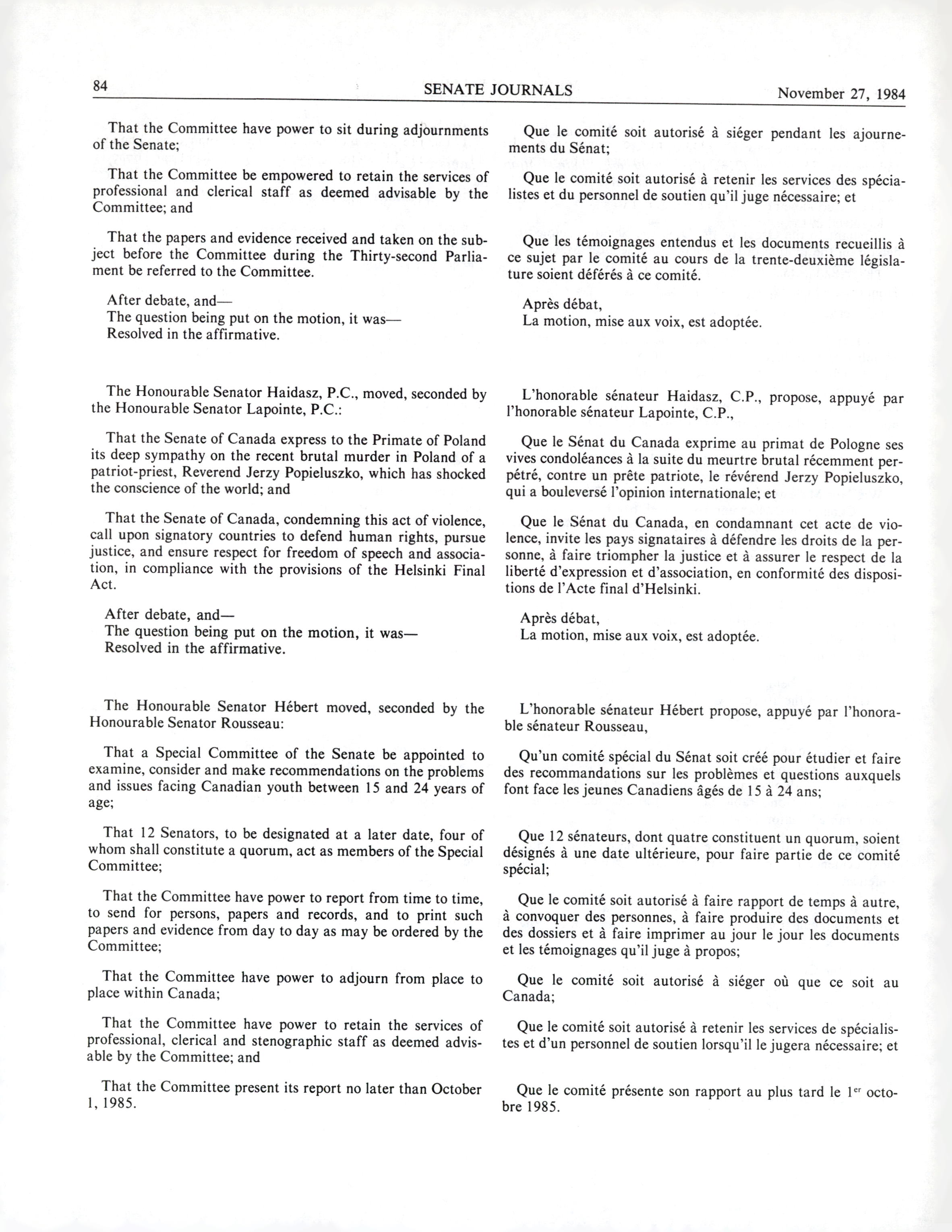 « Senate Journals, 33rd Parliament, 1st Session