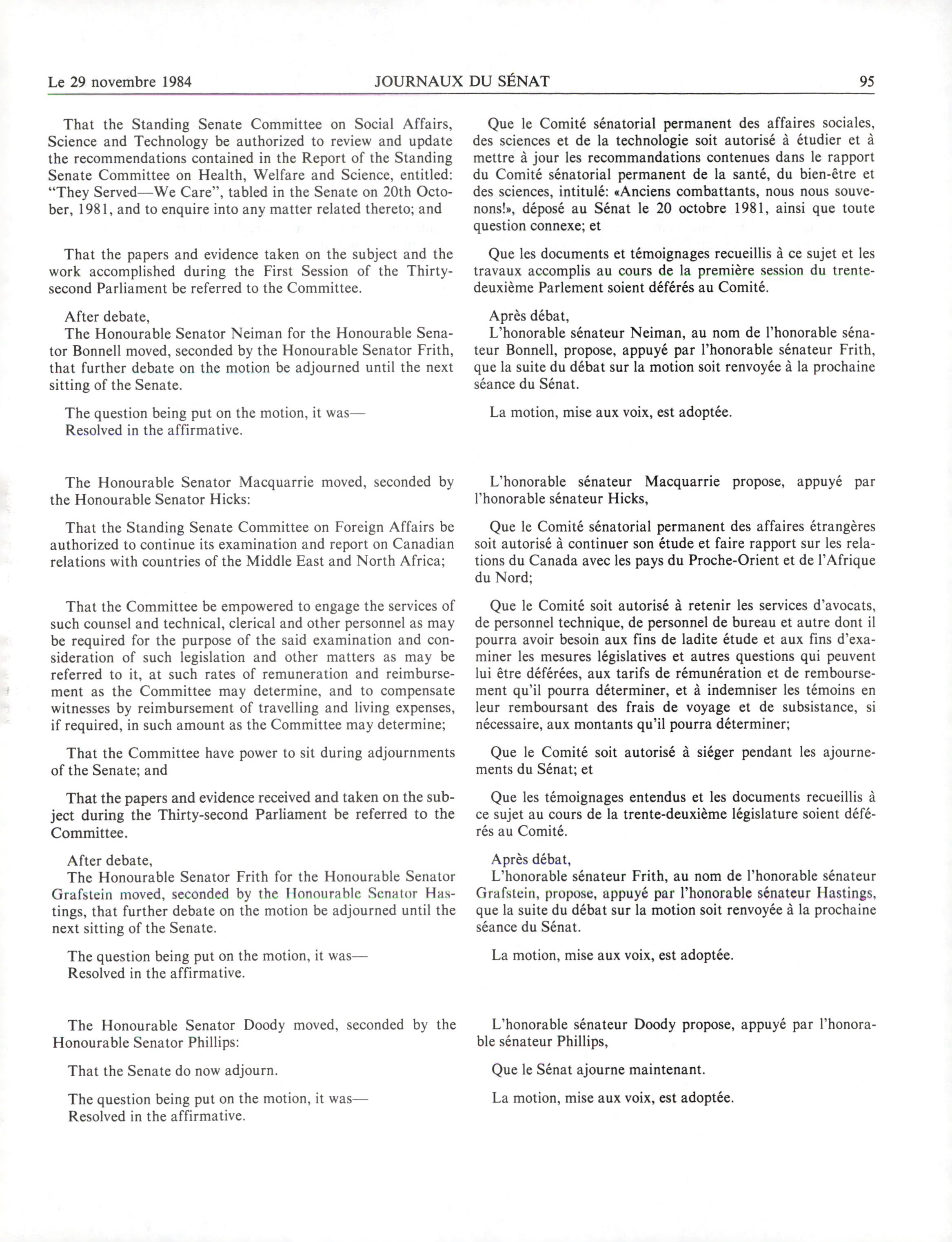 « Senate Journals, 33rd Parliament, 1st Session