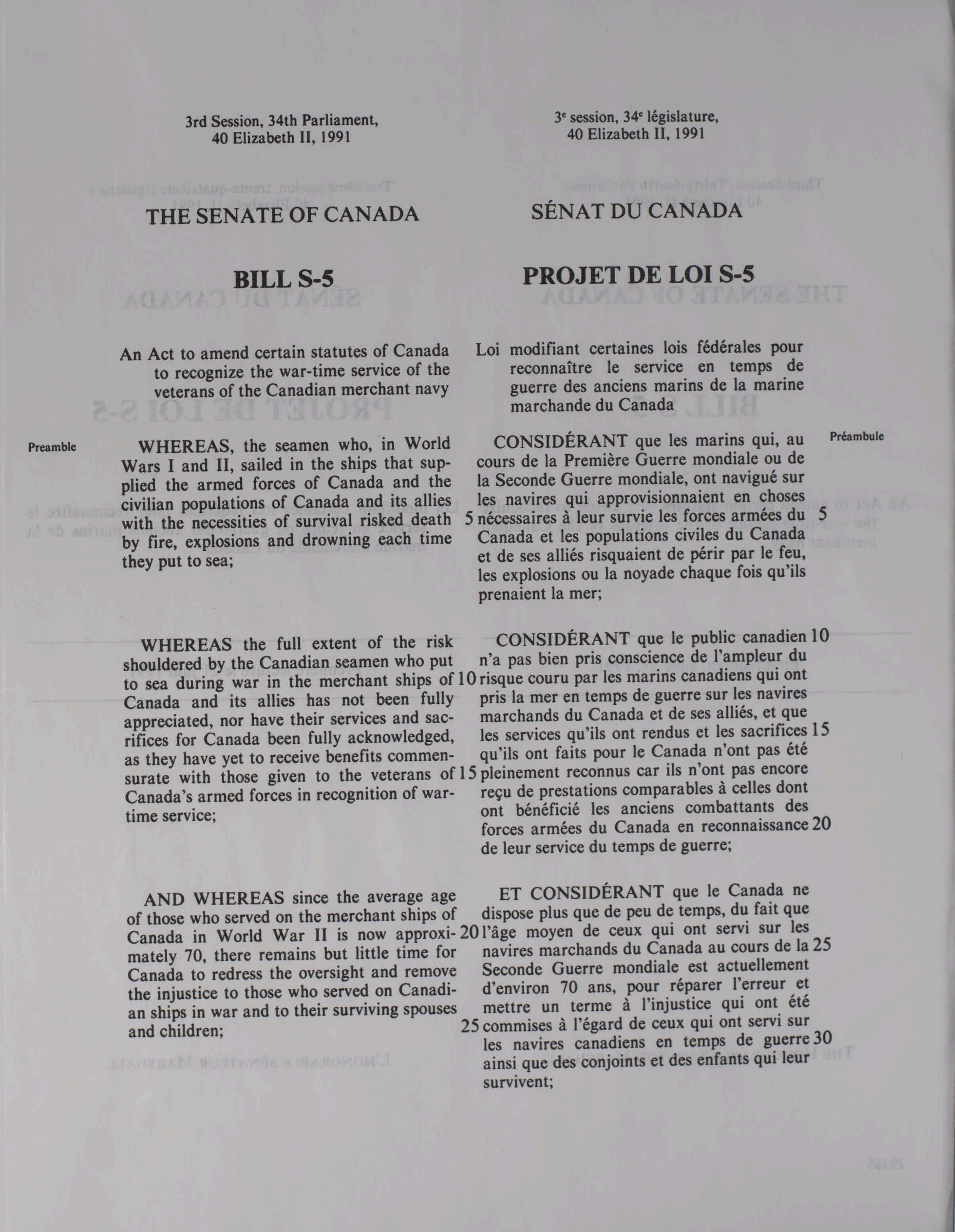 « Projets de loi du Sénat, 34e Législature, 3e Session
