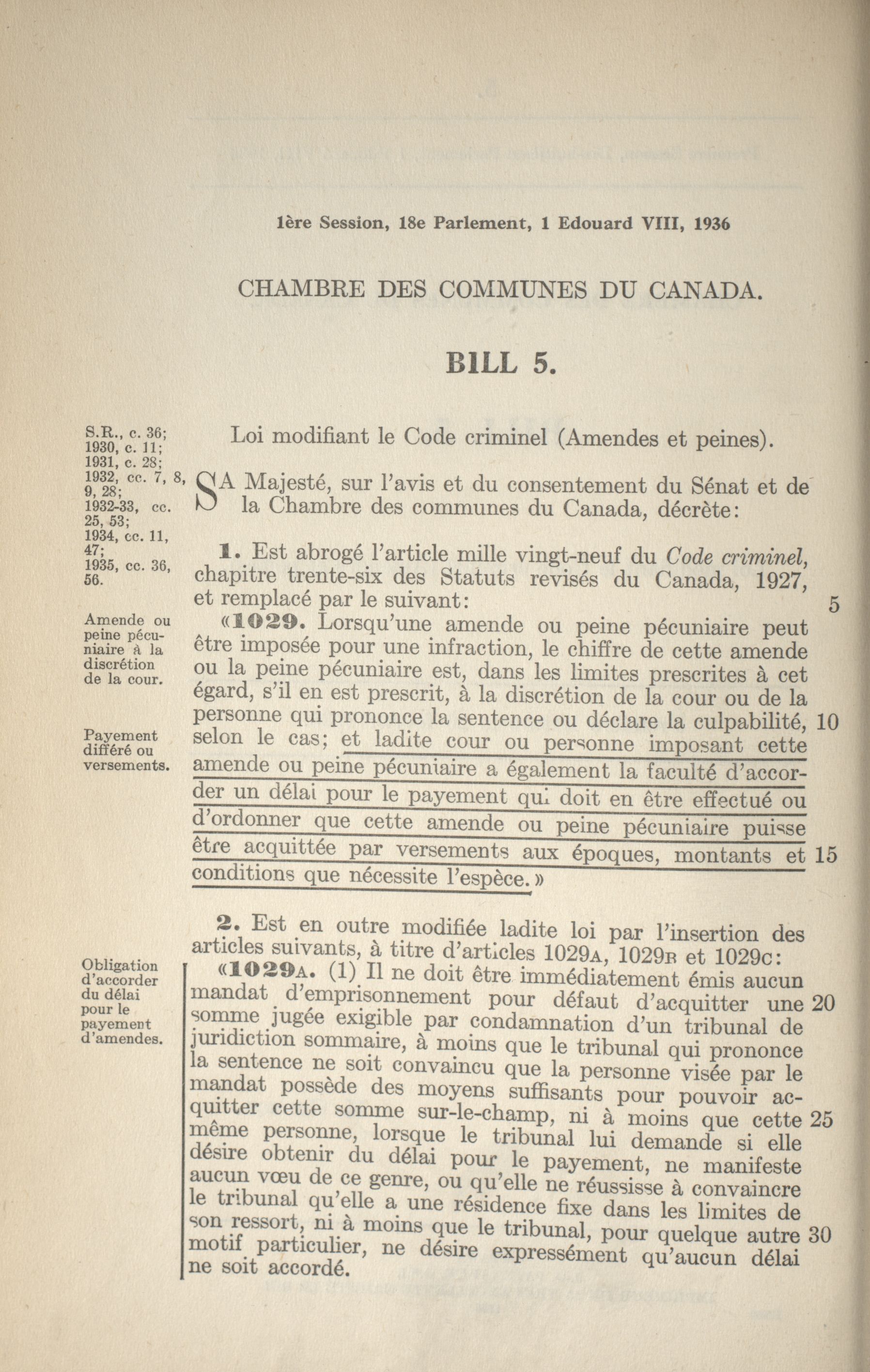 « Projets de loi de la Chambre des communes, 18e Législature, 1re Session