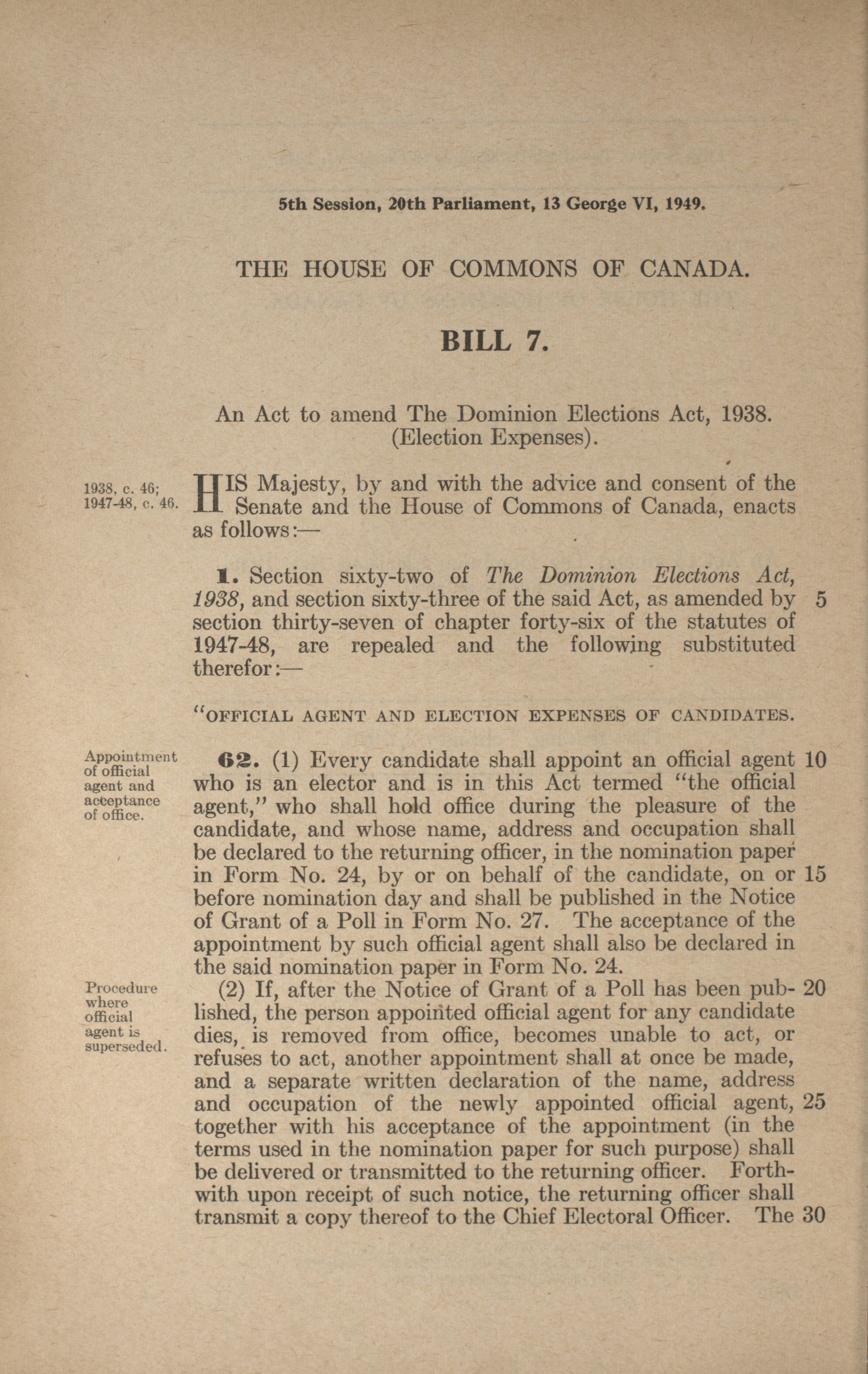 « House of Commons Bills, 20th Parliament, 5th Session