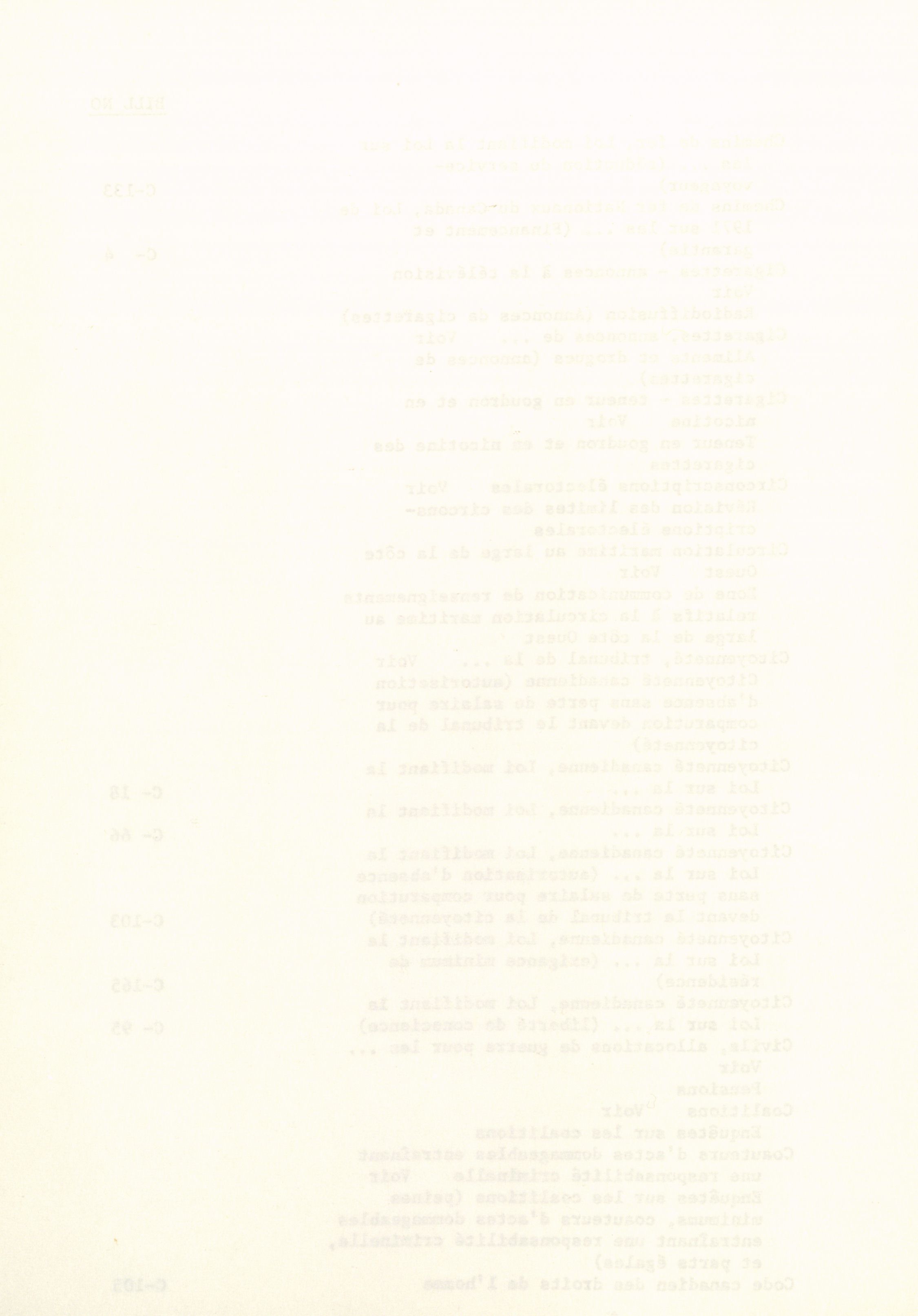 House of Commons Bills, 28th Parliament, 4th Session : Index = Projets de loi de la Chambre des communes, 28e Législature, 4e Session : Index