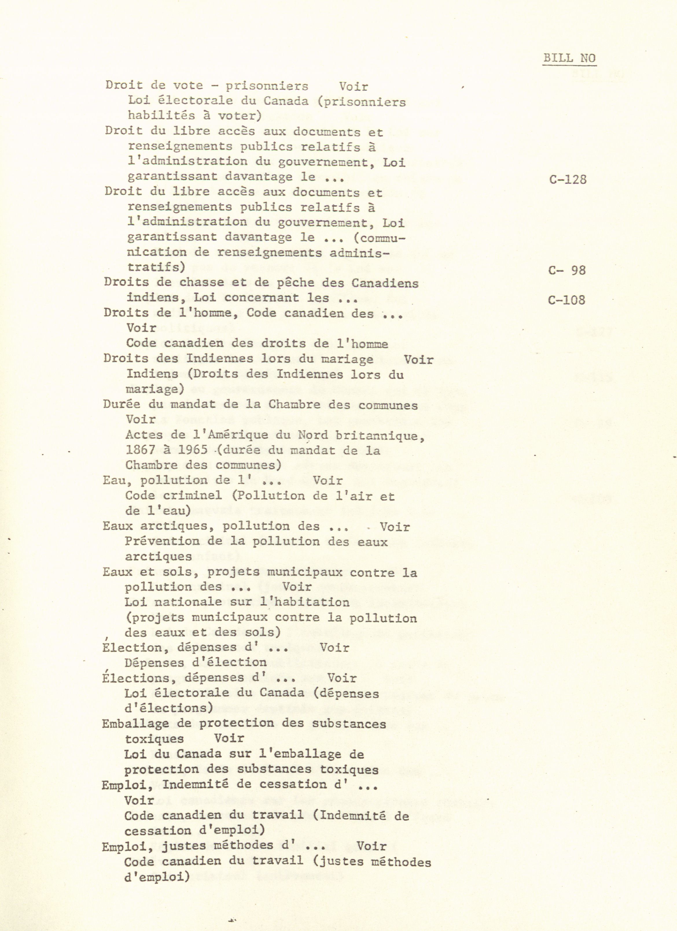 House of Commons Bills, 28th Parliament, 4th Session : Index = Projets de loi de la Chambre des communes, 28e Législature, 4e Session : Index