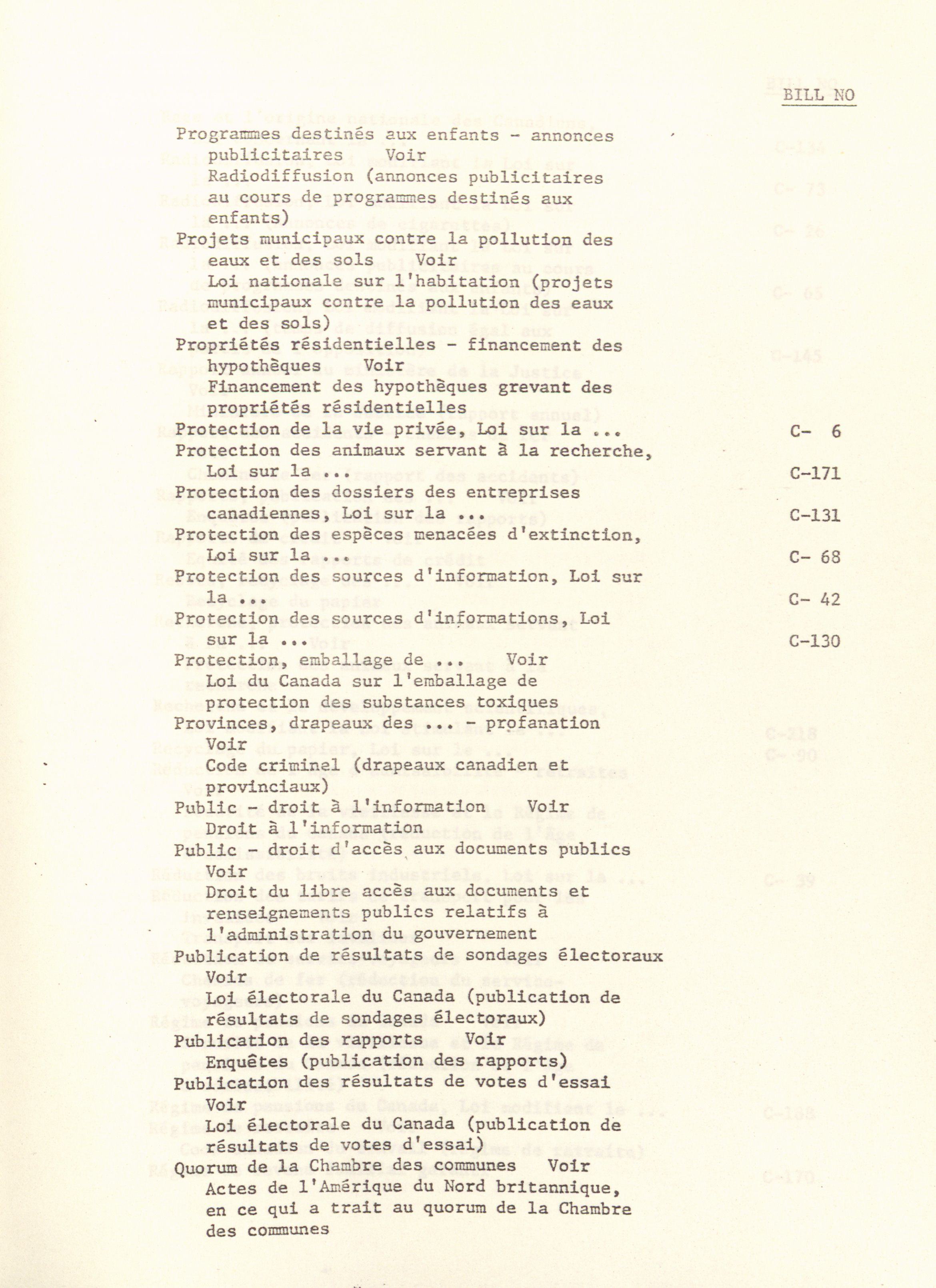 House of Commons Bills, 28th Parliament, 4th Session : Index = Projets de loi de la Chambre des communes, 28e Législature, 4e Session : Index