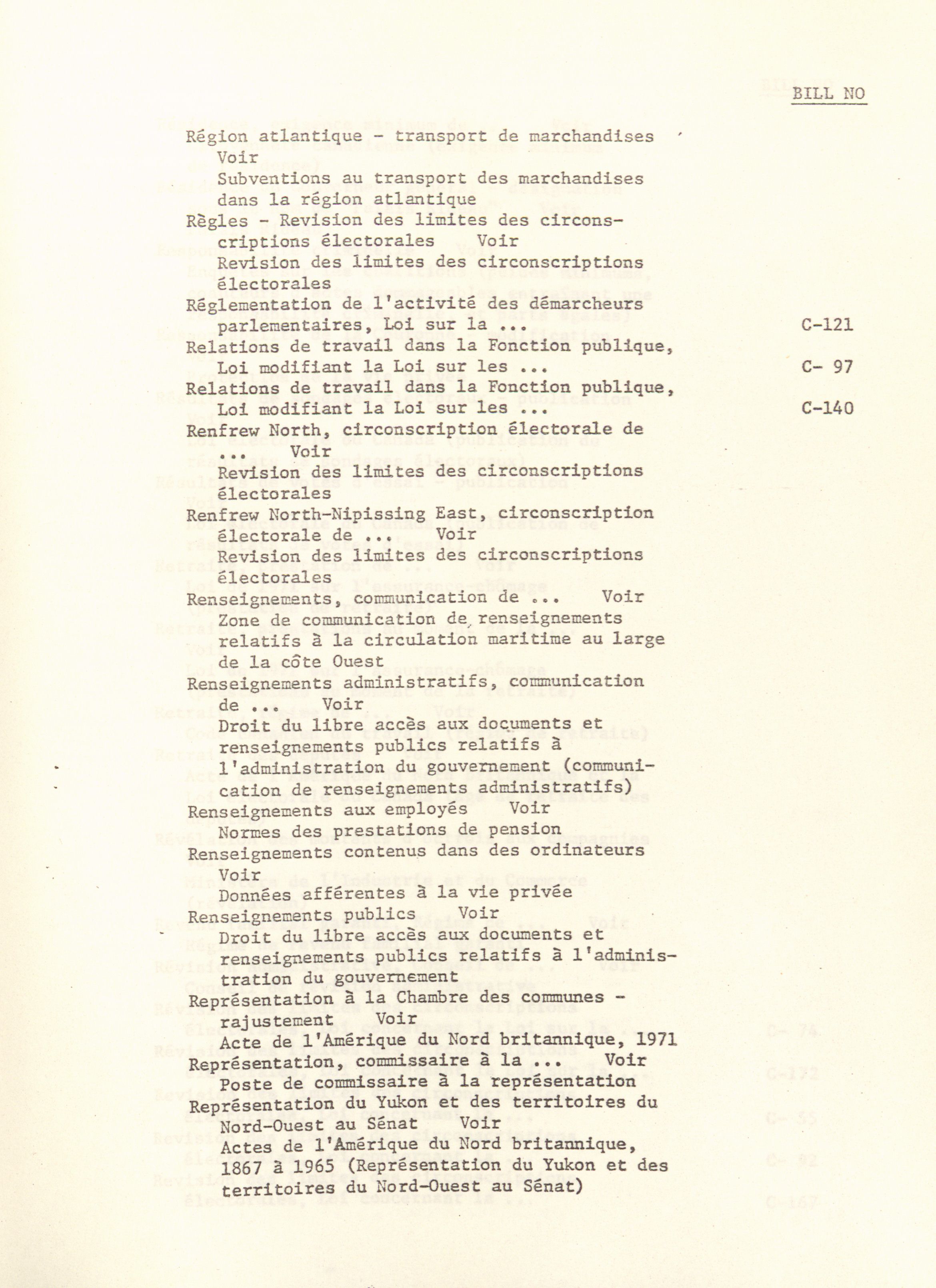 House of Commons Bills, 28th Parliament, 4th Session : Index = Projets de loi de la Chambre des communes, 28e Législature, 4e Session : Index
