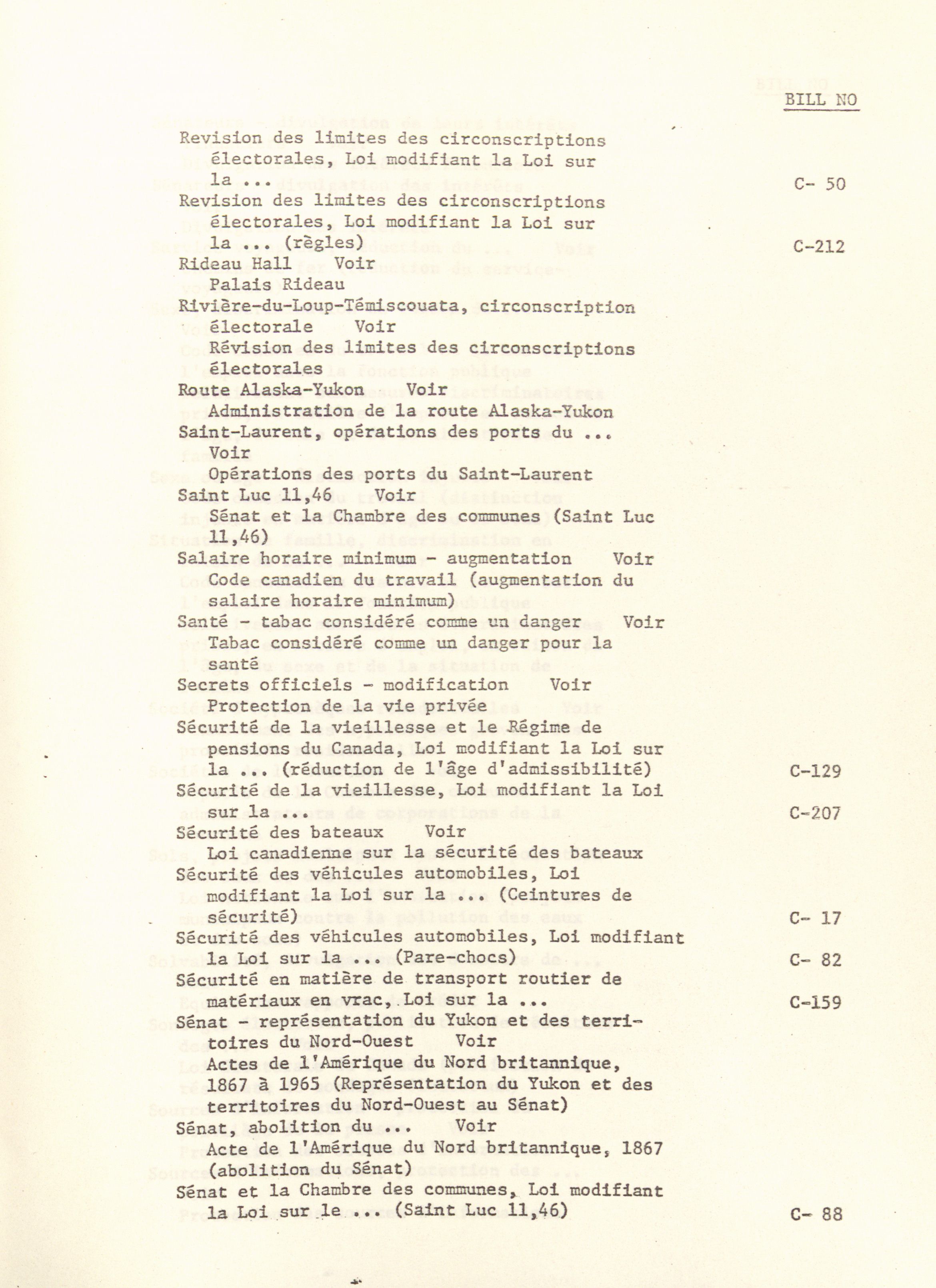 House of Commons Bills, 28th Parliament, 4th Session : Index = Projets de loi de la Chambre des communes, 28e Législature, 4e Session : Index