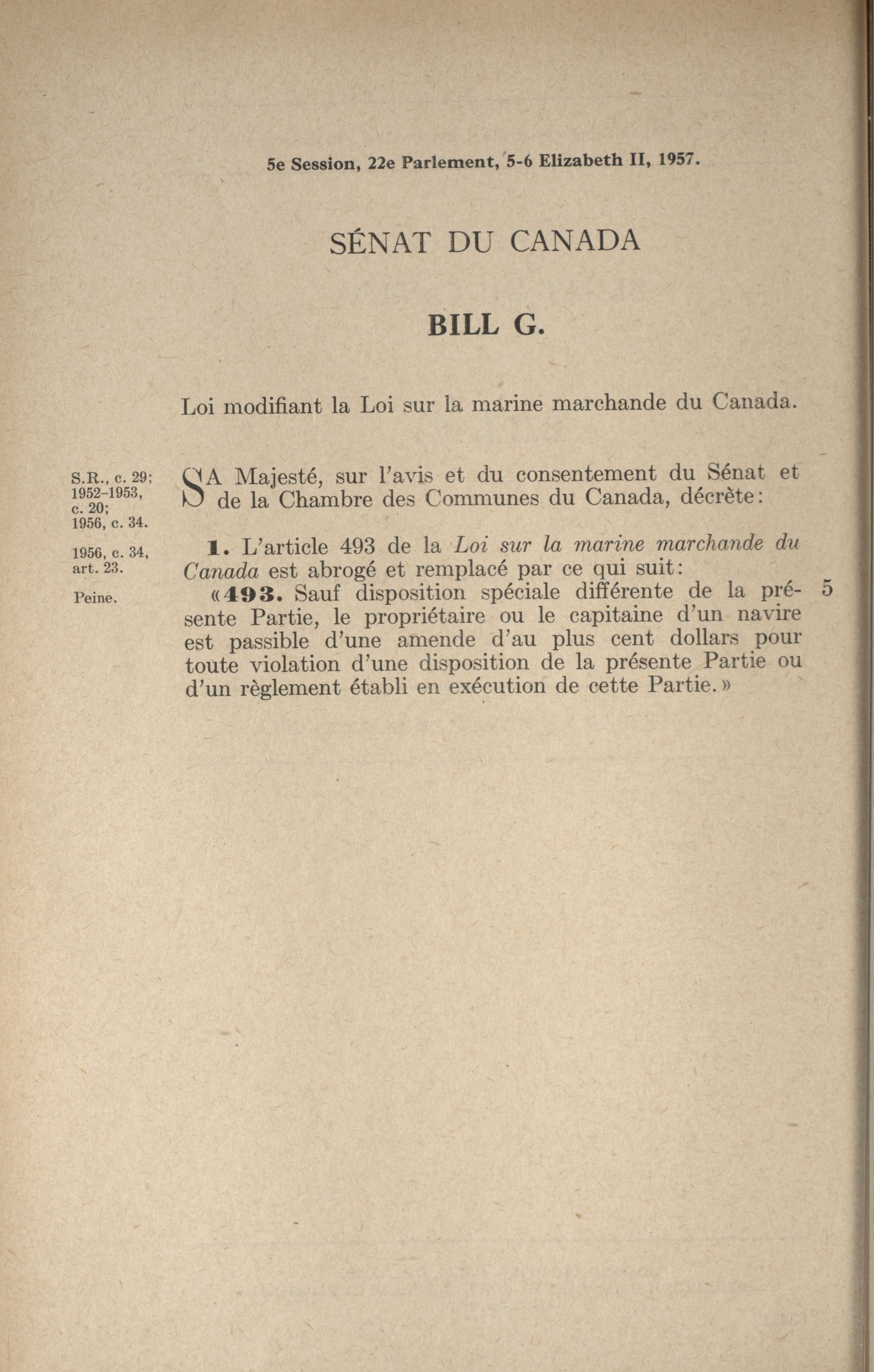 « Projets de loi du Sénat, 22e Législature, 5e Session