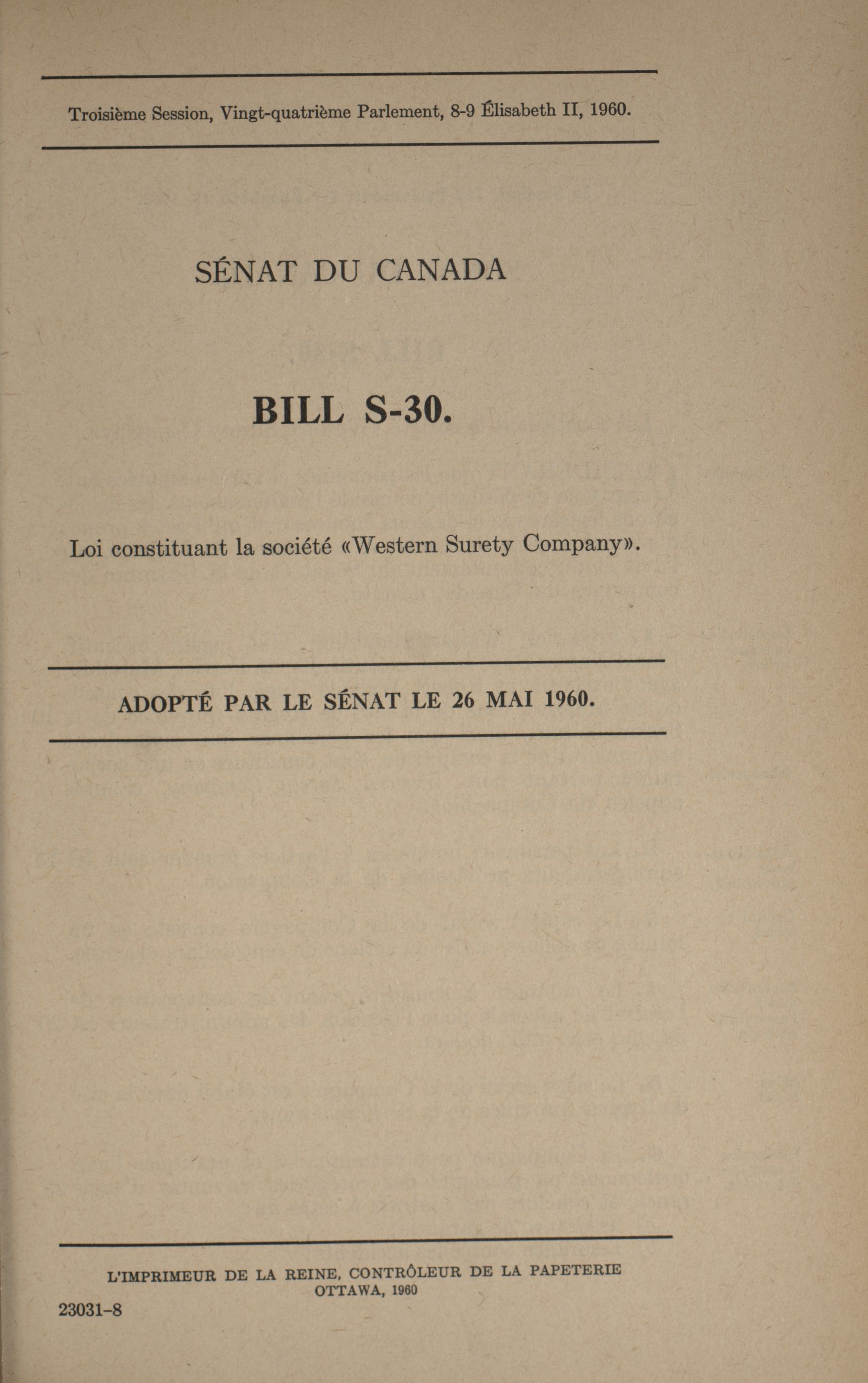 « Projets de loi du Sénat, 24e Législature, 3e Session