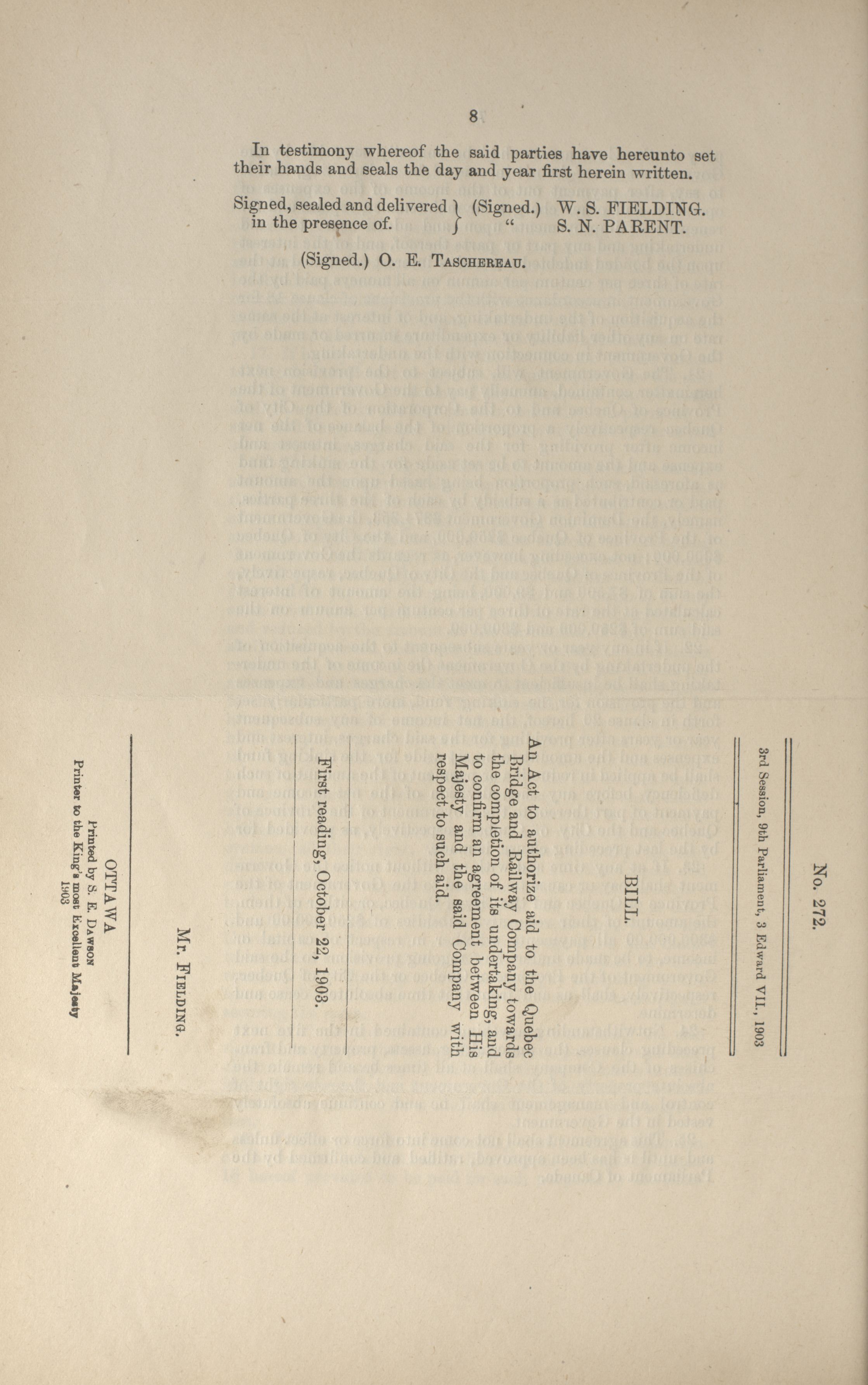 Senate and House of Commons Bills, 9th Parliament, 3rd Session : A-Z, 2-272