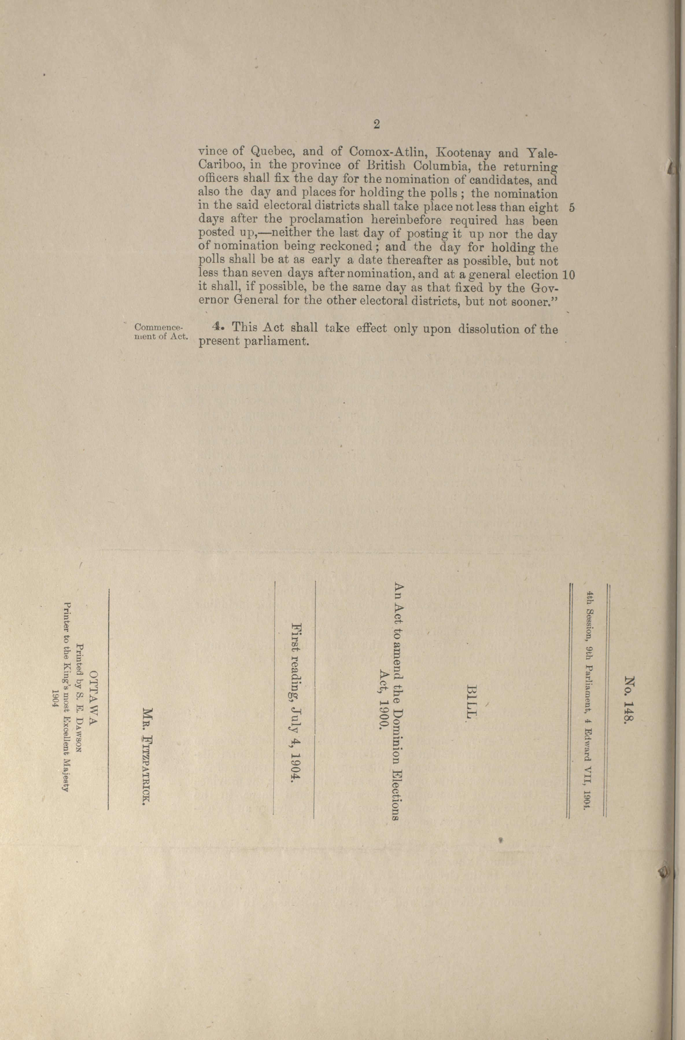 « House of Commons Bills, 9th Parliament, 4th Session