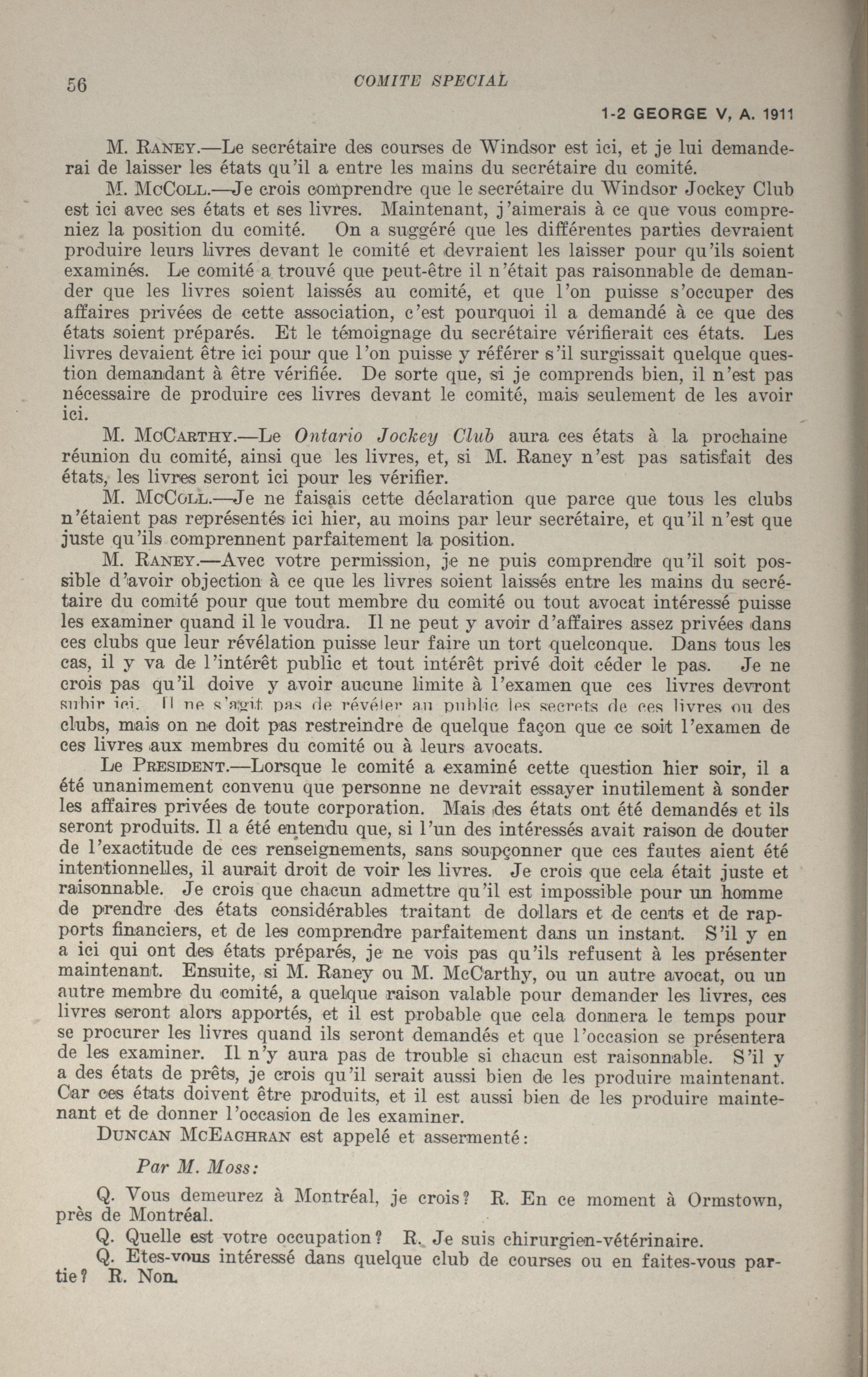 Comités de la Chambre des communes, 11e Législature, 2e Session : Comité spécial relatif aux paris sur les courses de chevaux, vol. 1