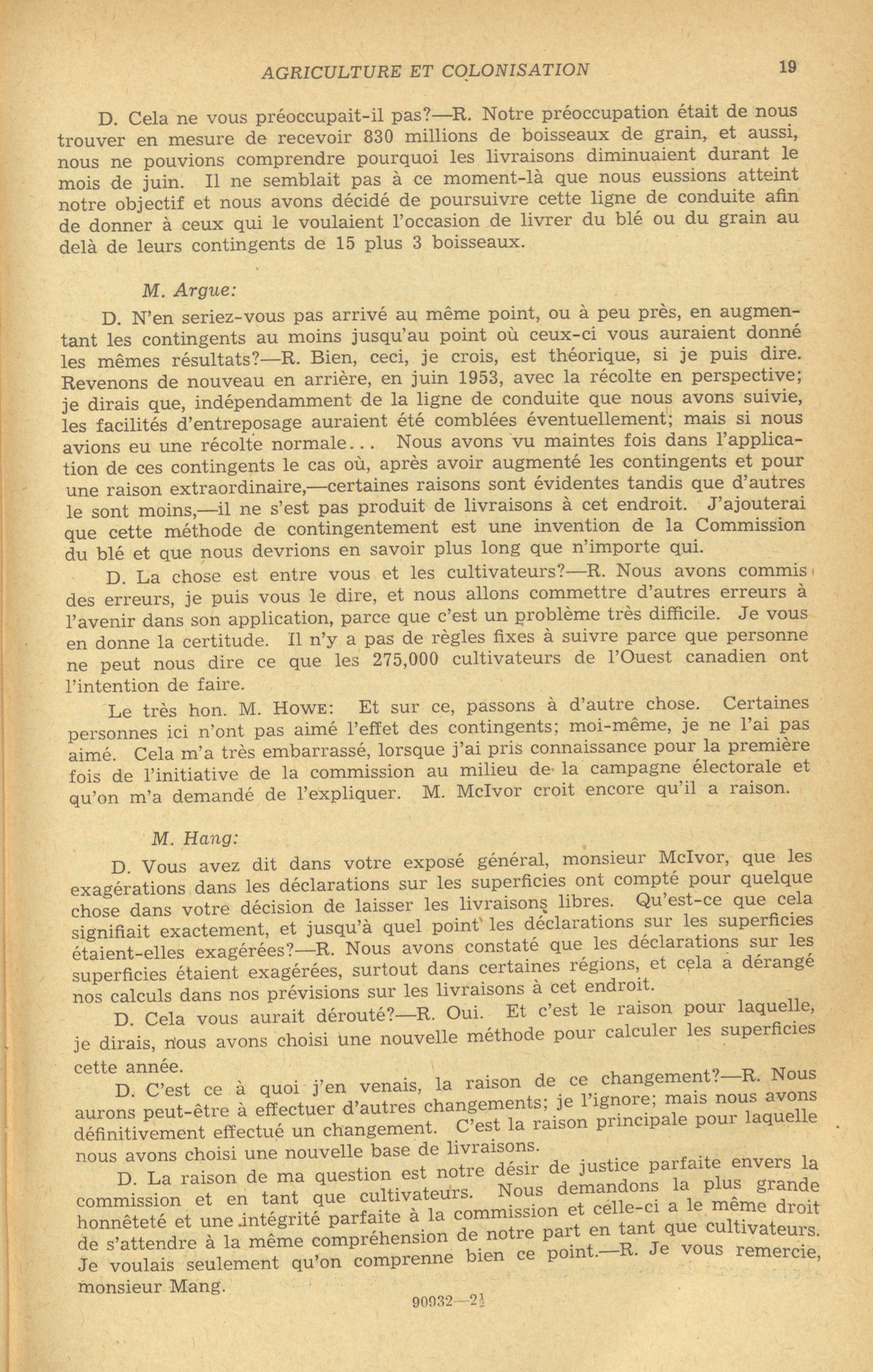 Comités de la Chambre des communes, 22e Législature, 1re Session : Comité permanent de l'agriculture et de la colonisation, vol. 1