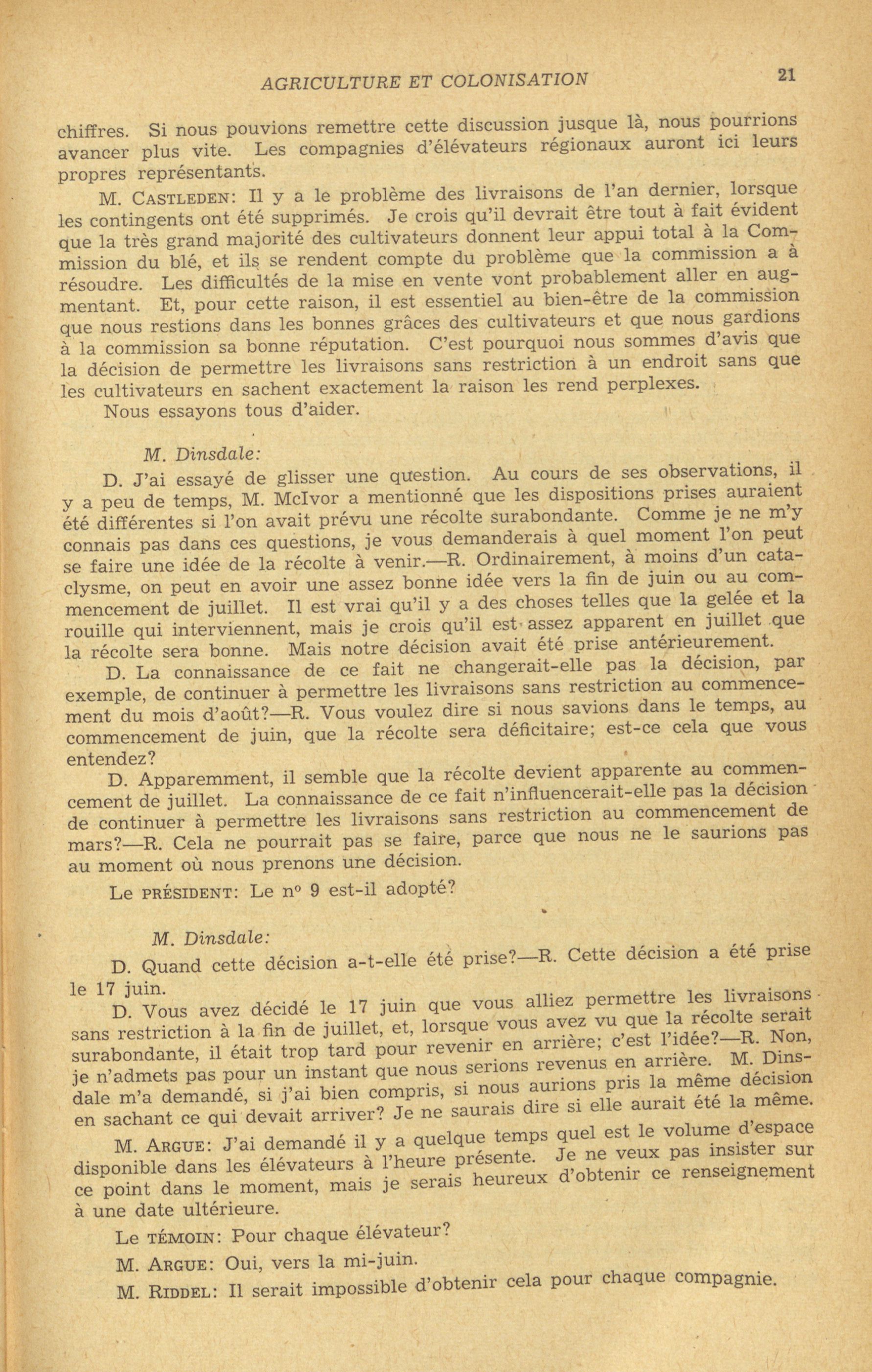 Comités de la Chambre des communes, 22e Législature, 1re Session : Comité permanent de l'agriculture et de la colonisation, vol. 1