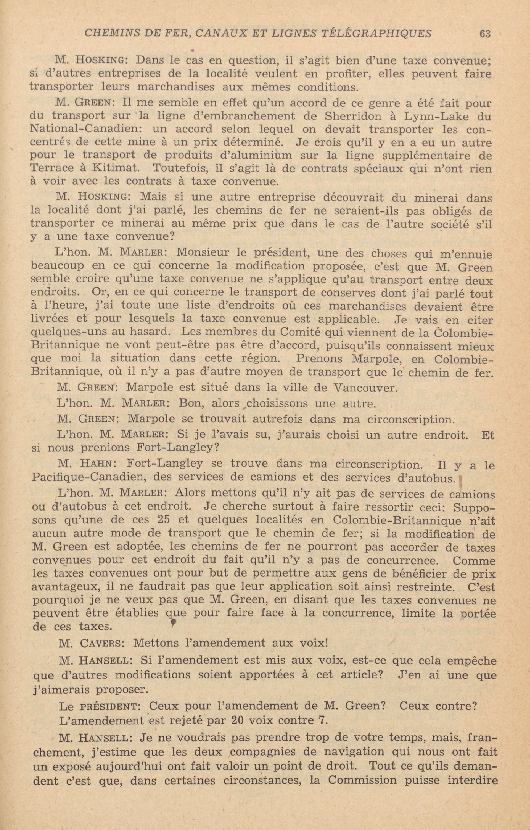 Comités de la Chambre des communes, 22e Législature, 2e Session : Comité permanent des chemins de fer, canaux et lignes télégraphiques, vol. 1