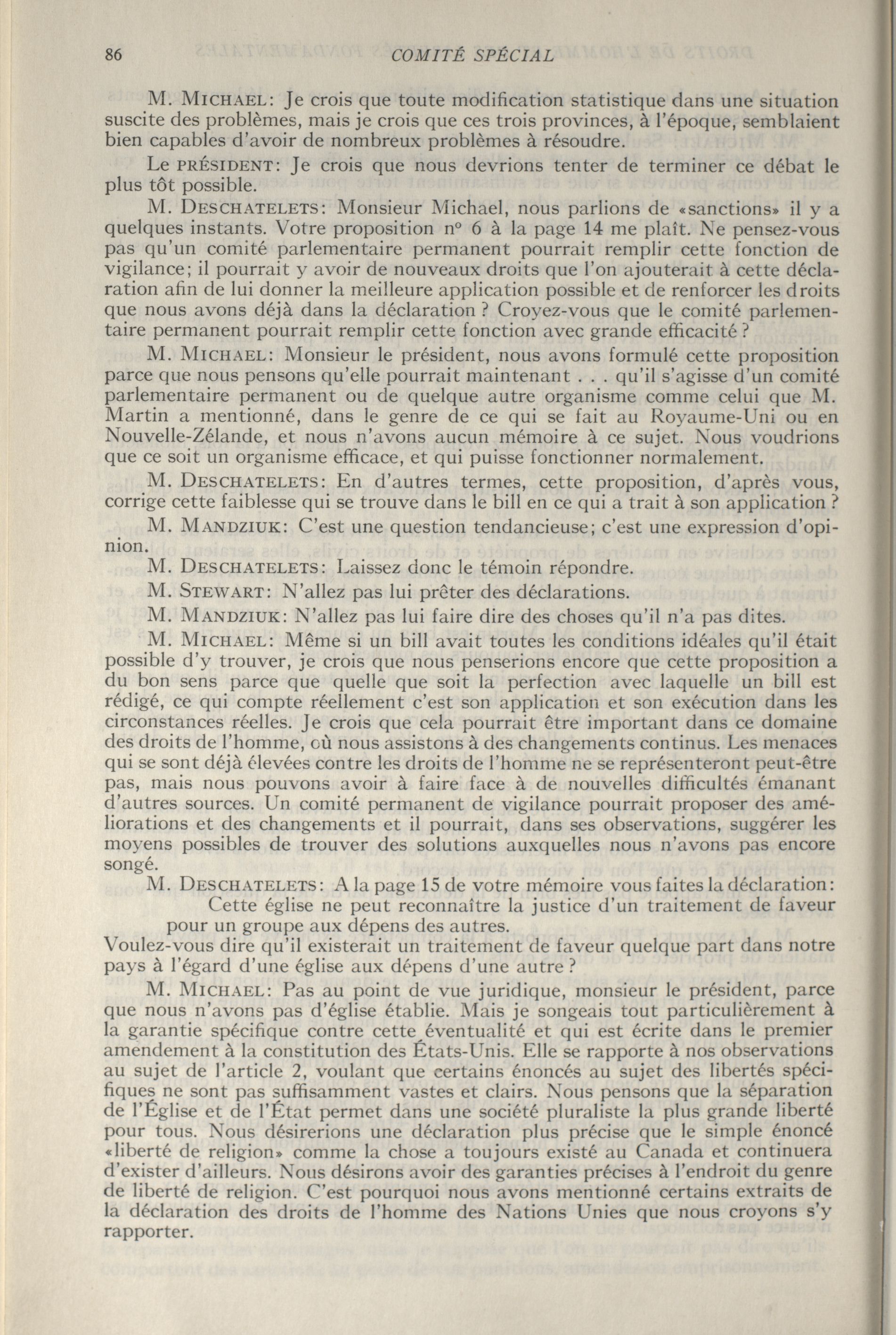 Comités de la Chambre des communes, 24e Législature, 3e Session : Comité spécial des droits de l'Homme et des libertés fondamentales, vol. 1