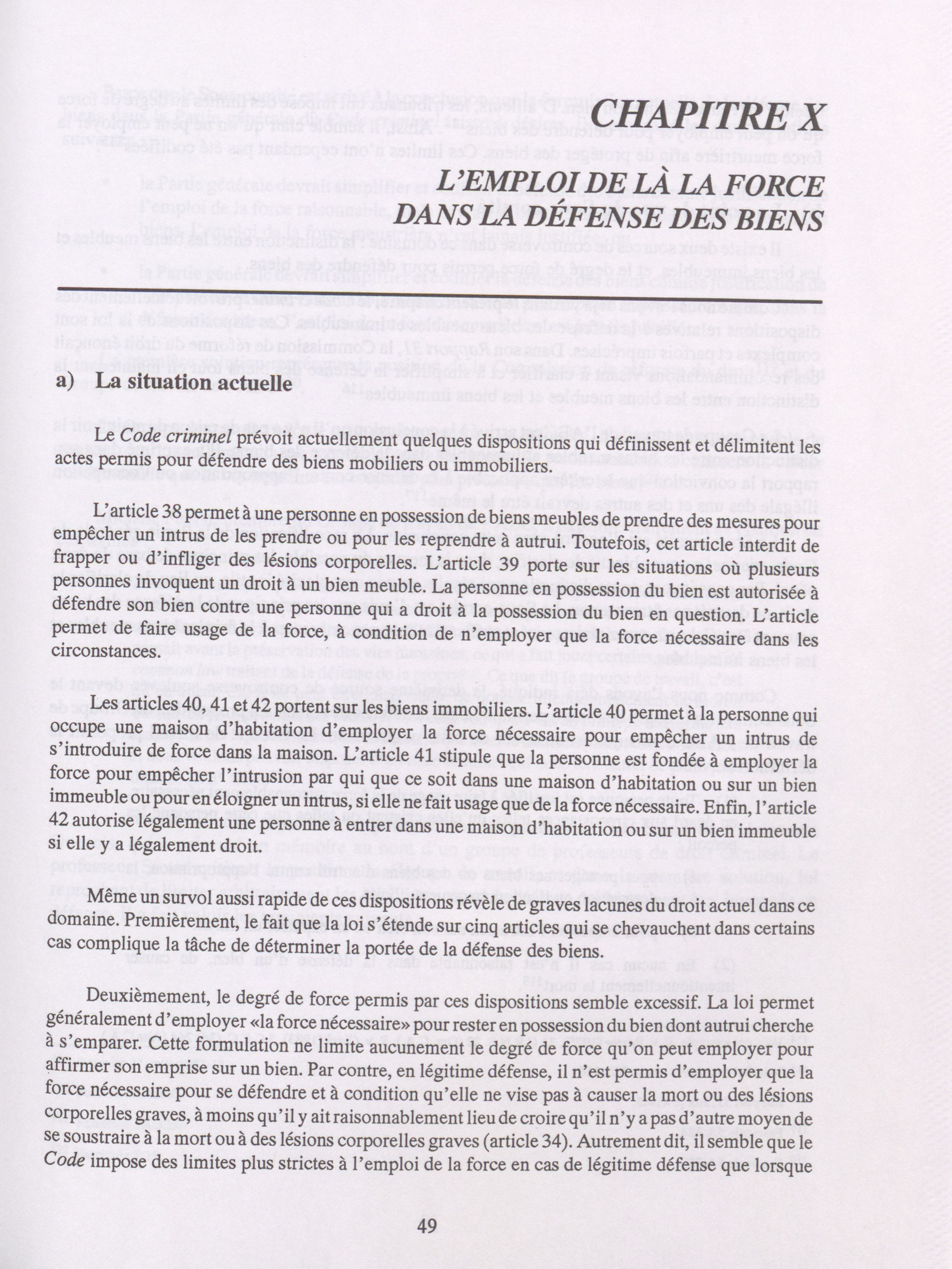 Principes de base, recodification de la Partie Générale du Code criminel du Canada