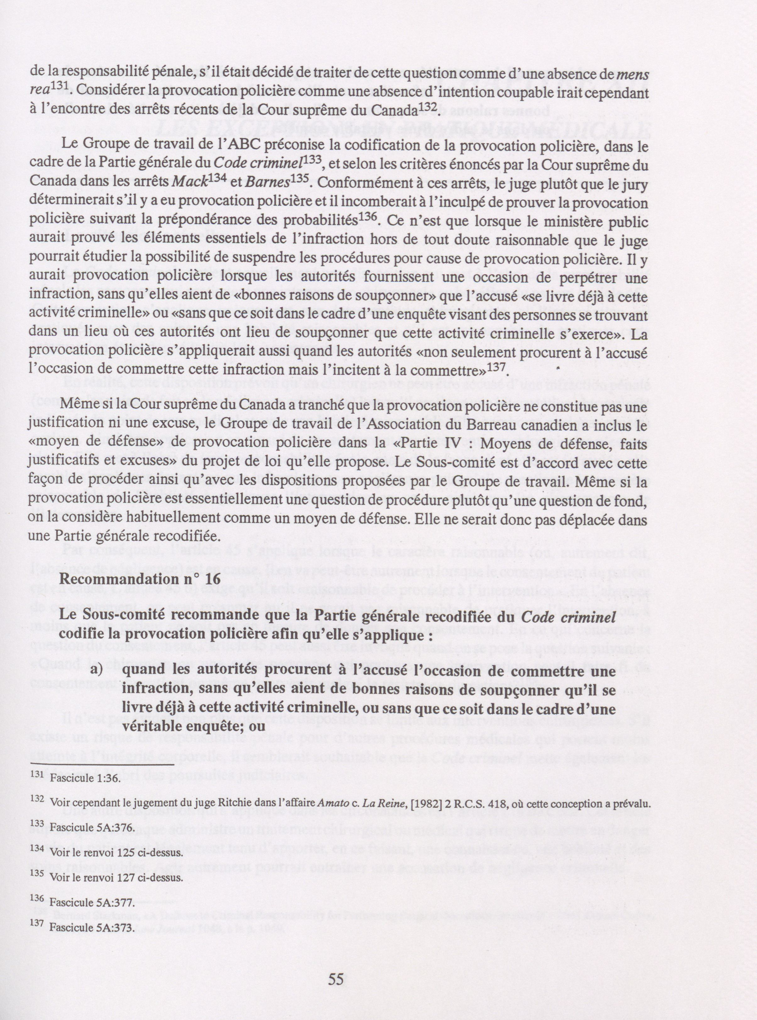 Principes de base, recodification de la Partie Générale du Code criminel du Canada