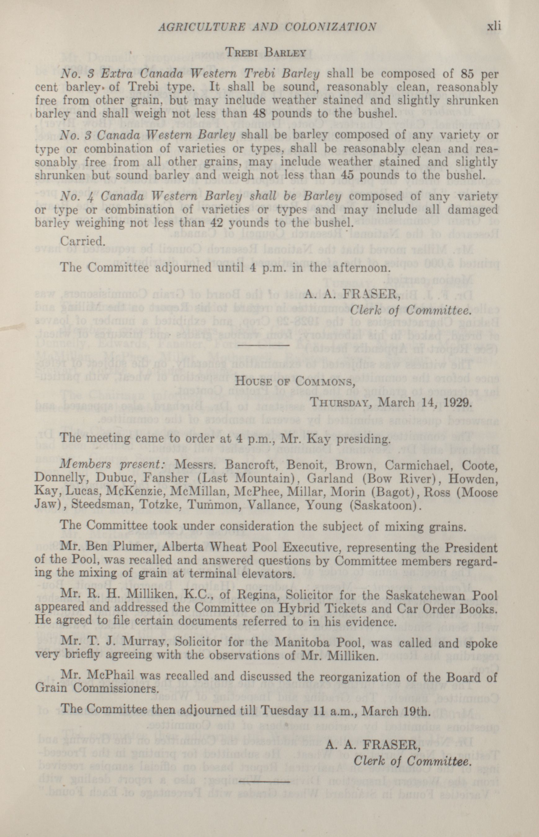 House of Commons Committees, 16th Parliament, 3rd Session : Select Standing Committee on Agriculture and Colonization, vol. 1