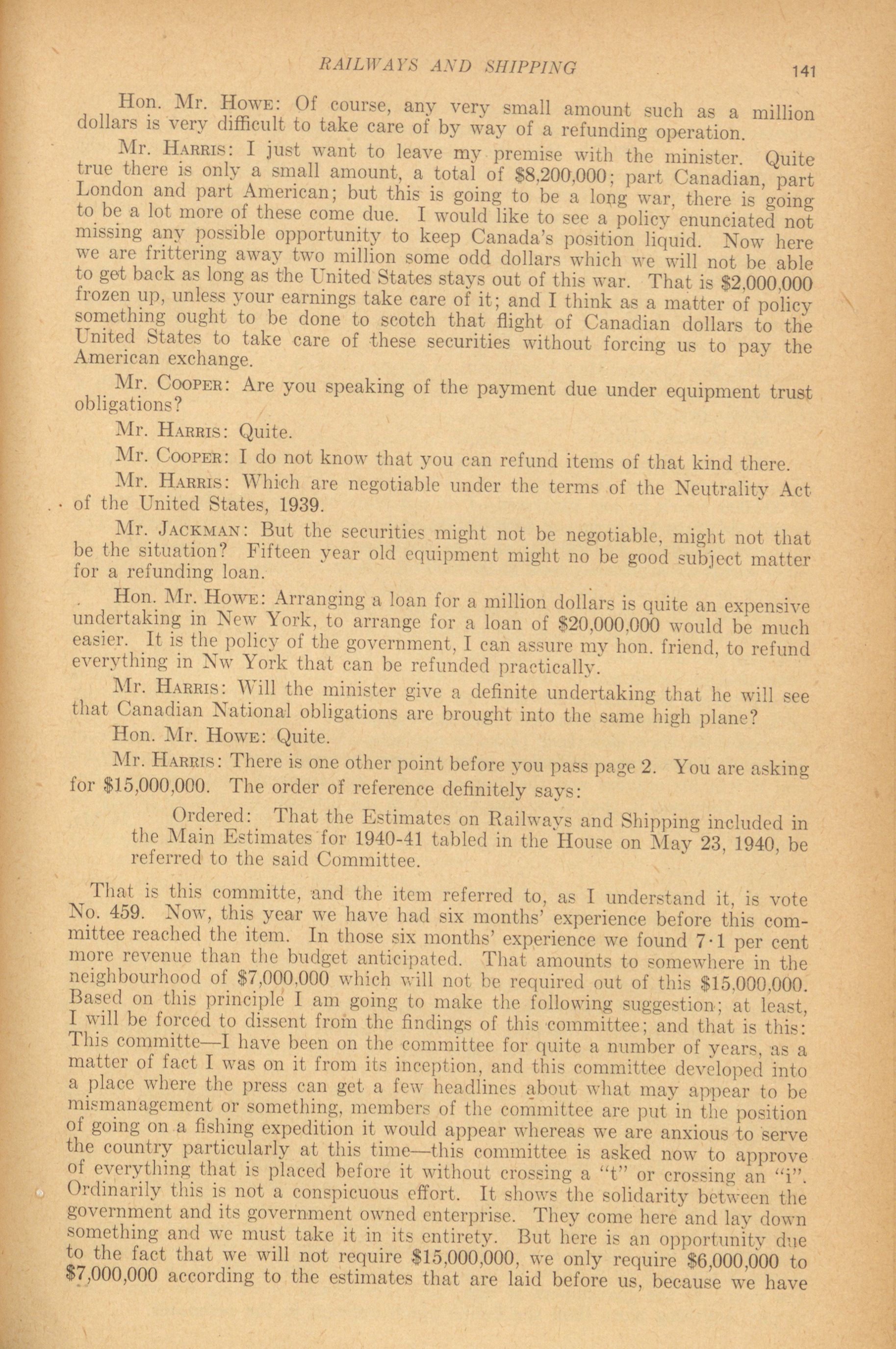 House of Commons Committees, 19th Parliament, 1st Session : Standing Committee on Railways and Shipping Owned, Operated and Controlled by the Government, vol. 1