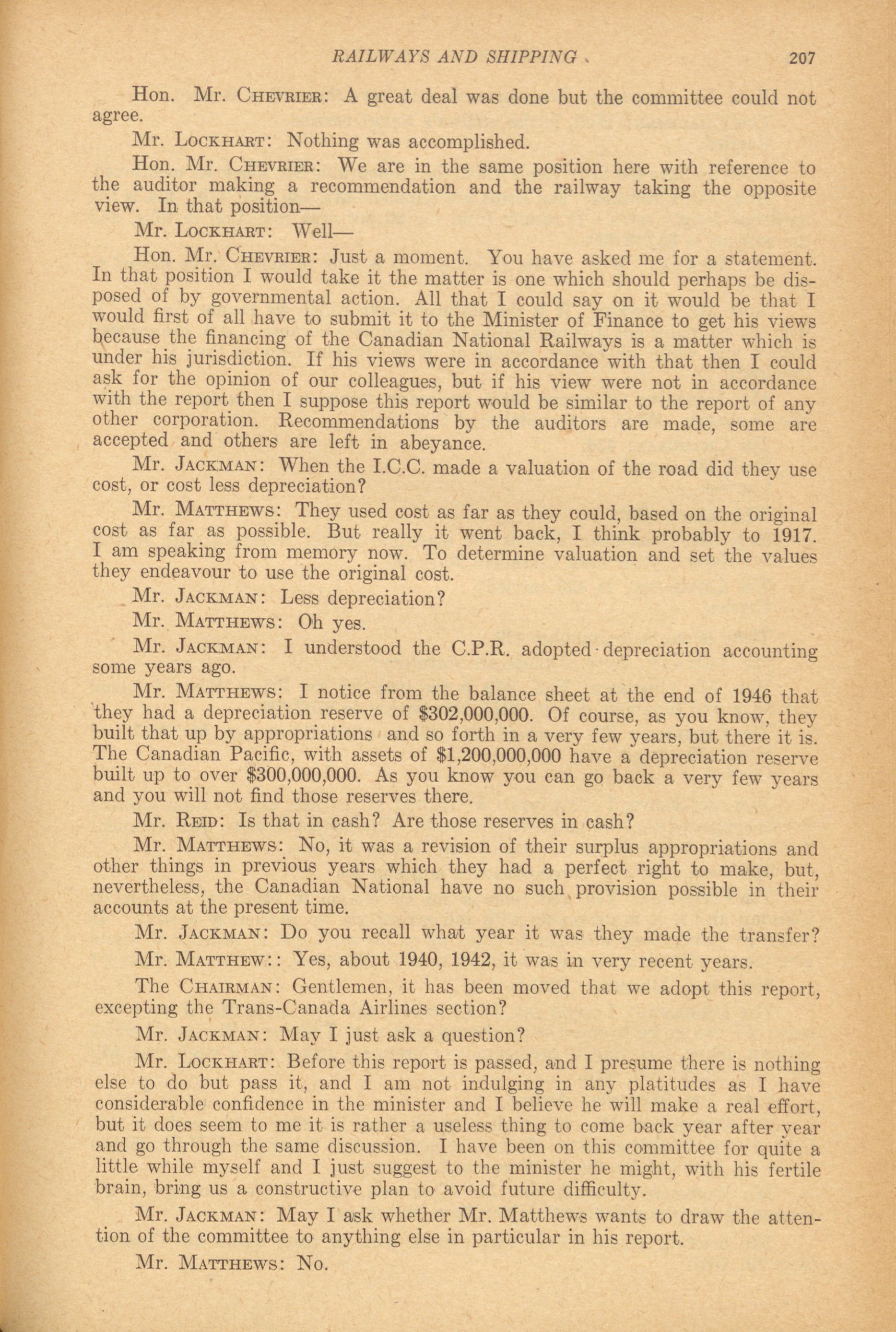 House of Commons Committees, 20th Parliament, 3rd Session : Sessional Committee on Railways and Shipping Owned, Operated and Controlled by the Government, vol. 1