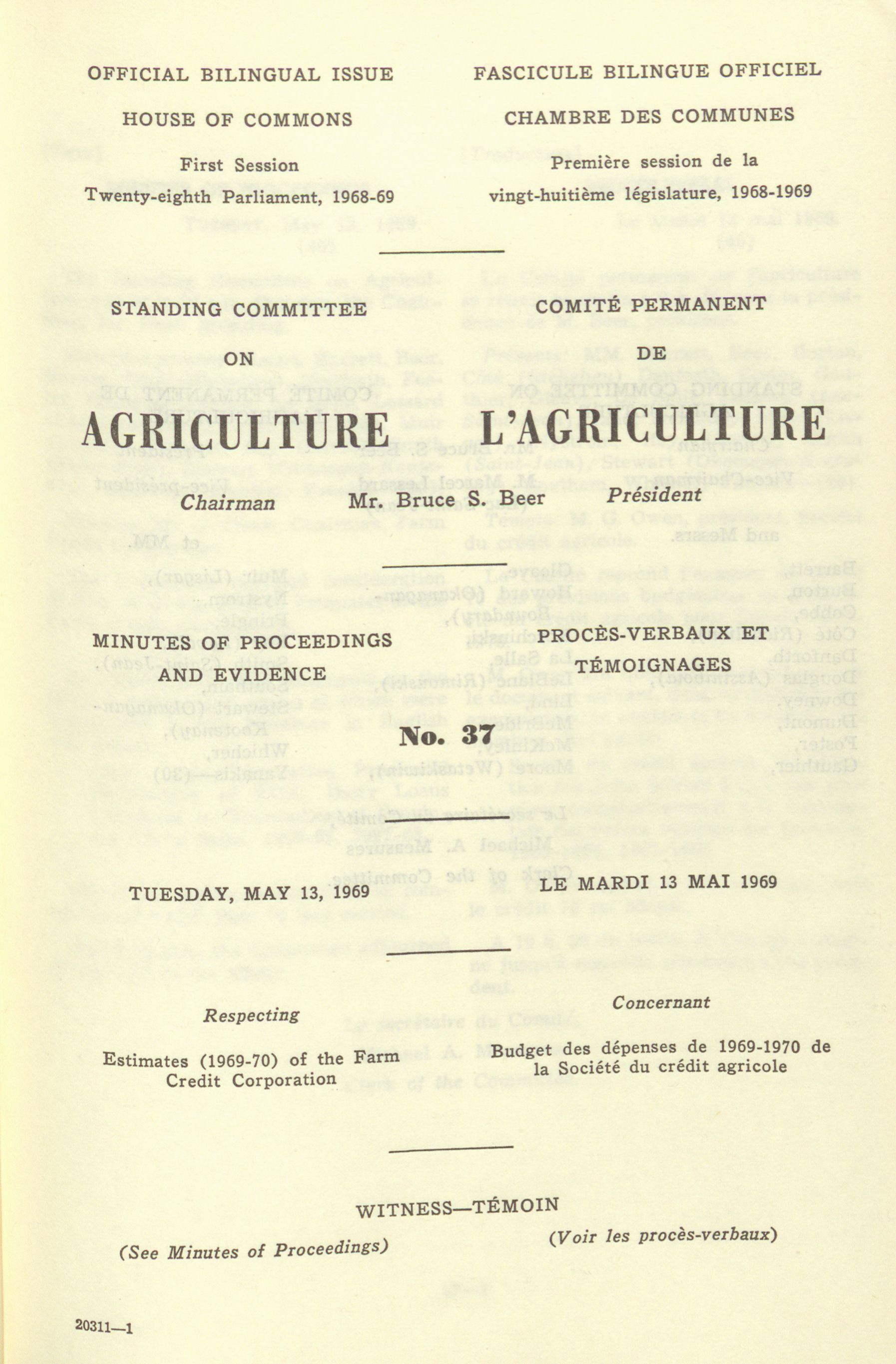 House of Commons Committees, 28th Parliament, 1st Session : Standing Committee on Agriculture, vol. 3 no. 36-52
