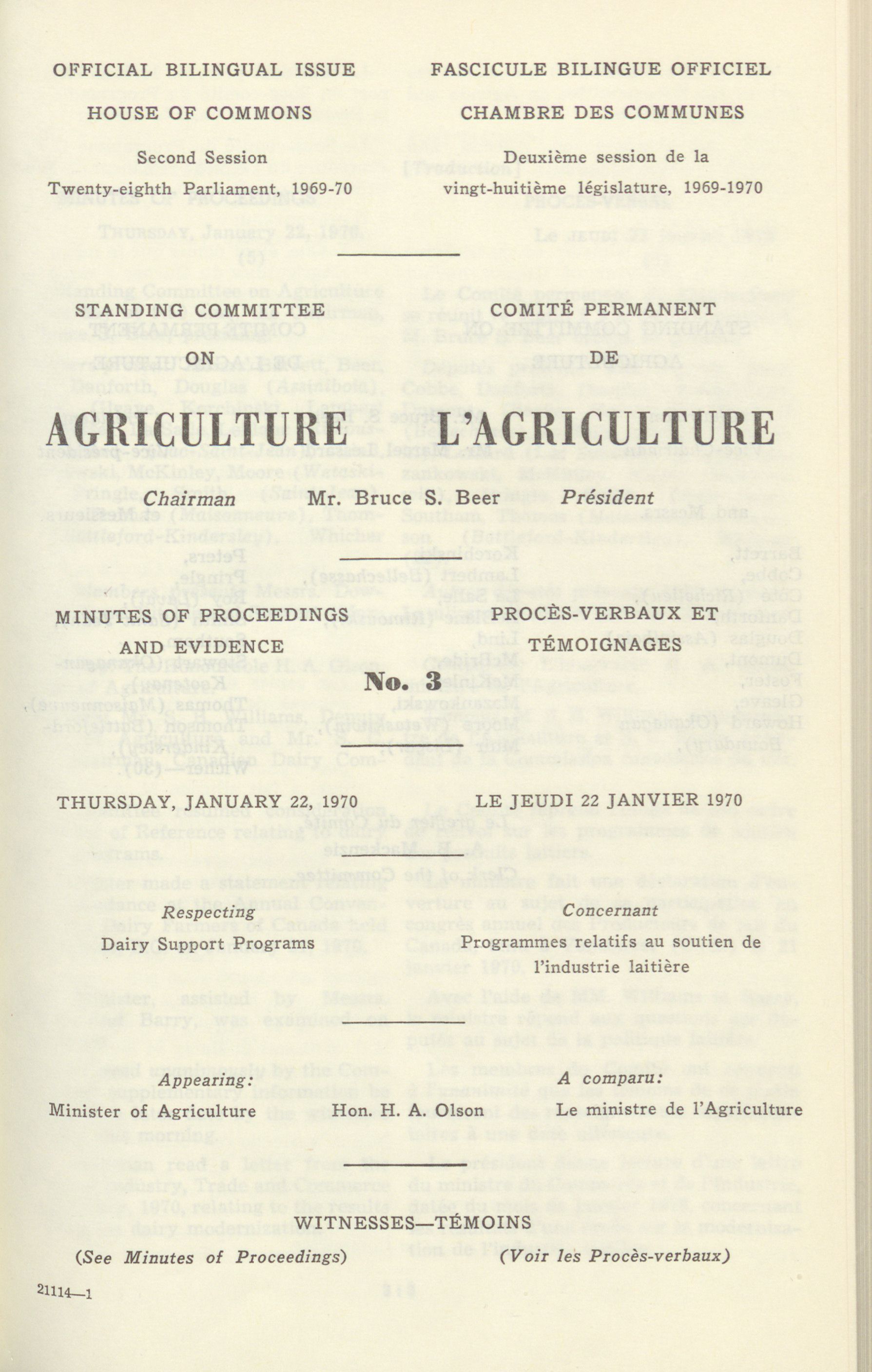 House of Commons Committees, 28th Parliament, 2nd Session : Standing Committee on Agriculture, vol. 1 no. 1-20 = Comités de la Chambre des communes, 28e Législature, 2e Session : Comité permanent de l'agriculture, vol. 1 no. 1-20