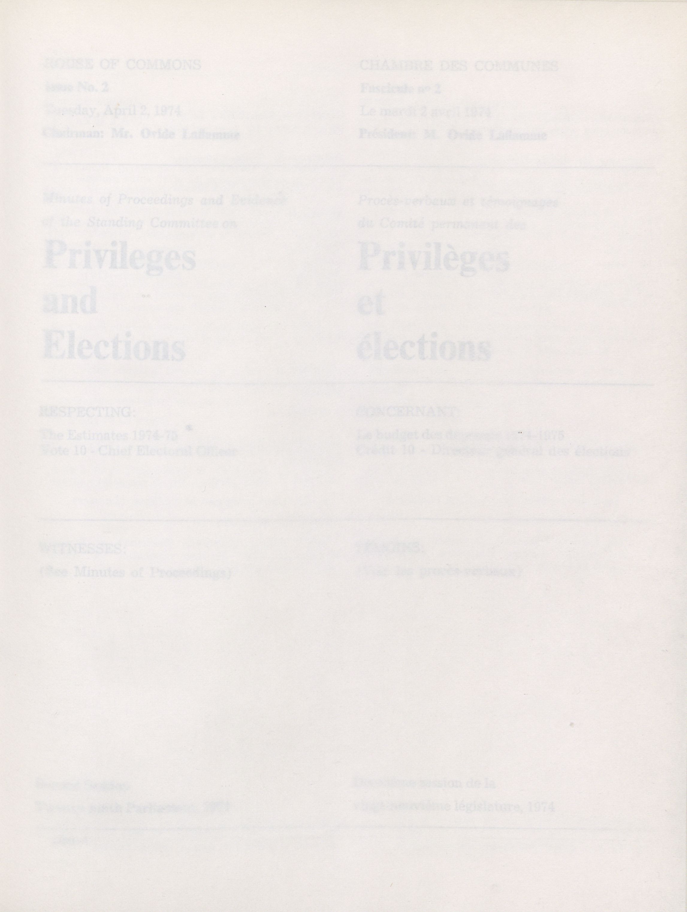 House of Commons Committees, 29th Parliament, 2nd Session : Standing Committee on Privileges and Elections, vol. 1 = Comités de la Chambre des communes, 29e Législature, 2e Session : Comité permanent des privilèges et élections, vol. 1