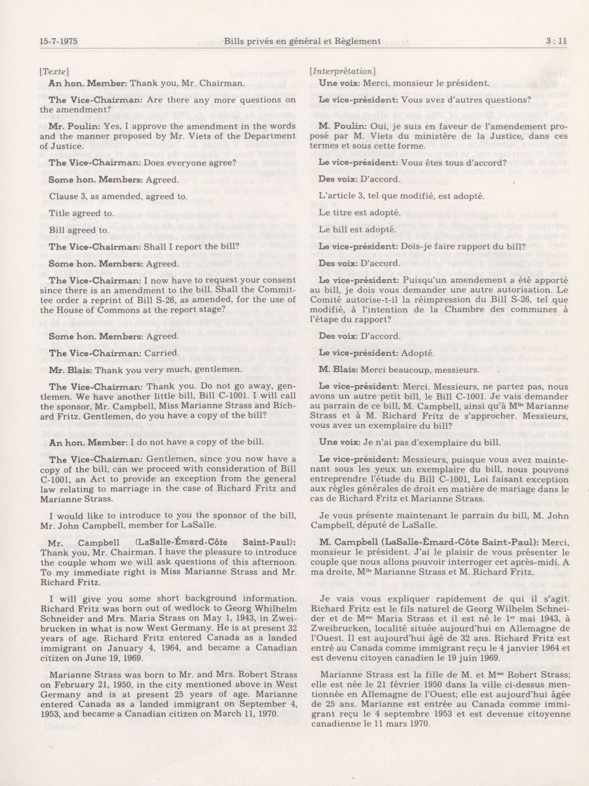 House of Commons Committees, 30th Parliament, 1st Session : Standing Committee on Miscellaneous Private Bills and Standing Orders, vol. 1 = Comités de la Chambre des communes, 30e Législature, 1re Session : Comité permanent des bills privés en général et du Règlement, vol. 1