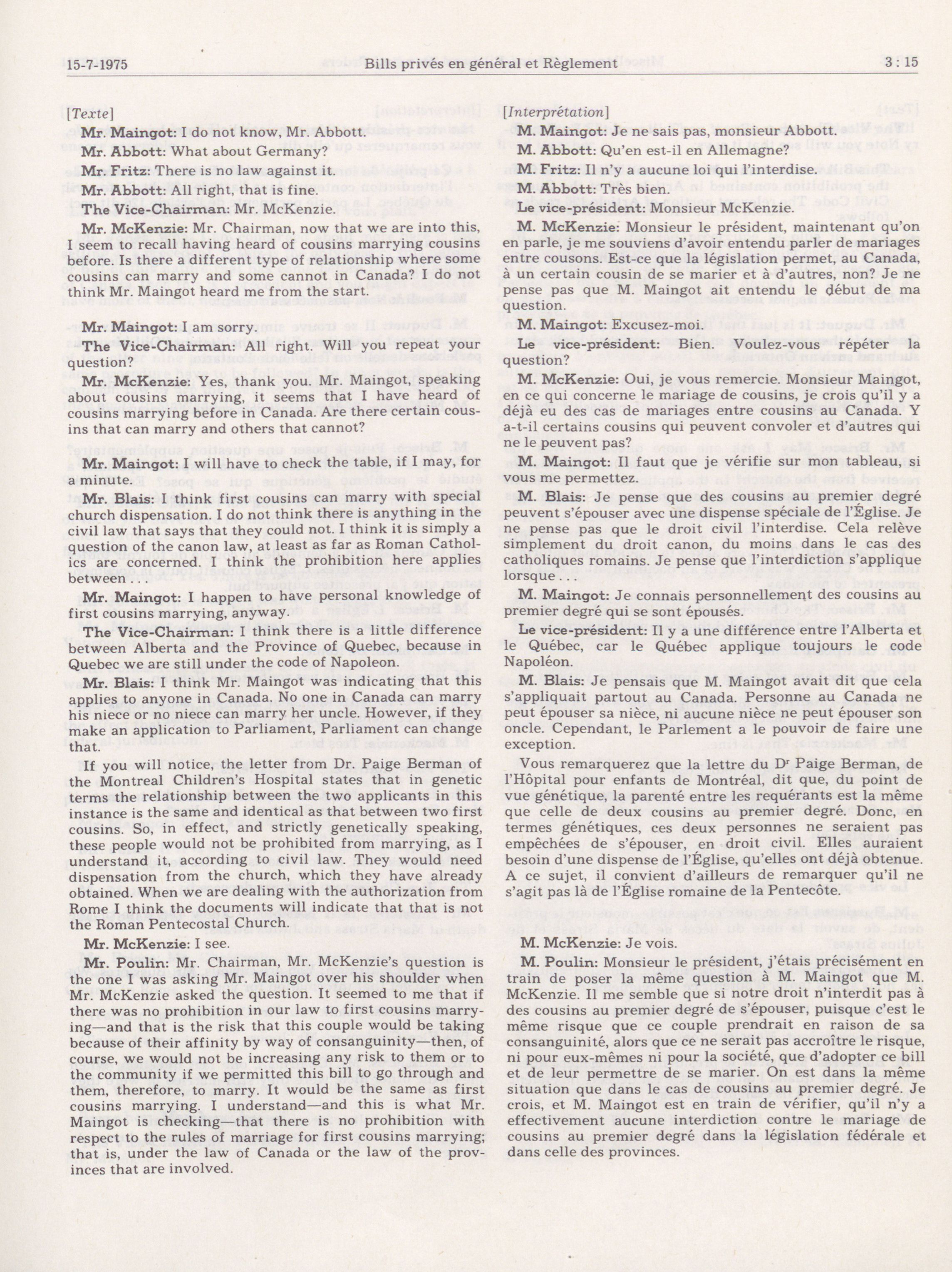 House of Commons Committees, 30th Parliament, 1st Session : Standing Committee on Miscellaneous Private Bills and Standing Orders, vol. 1 = Comités de la Chambre des communes, 30e Législature, 1re Session : Comité permanent des bills privés en général et du Règlement, vol. 1
