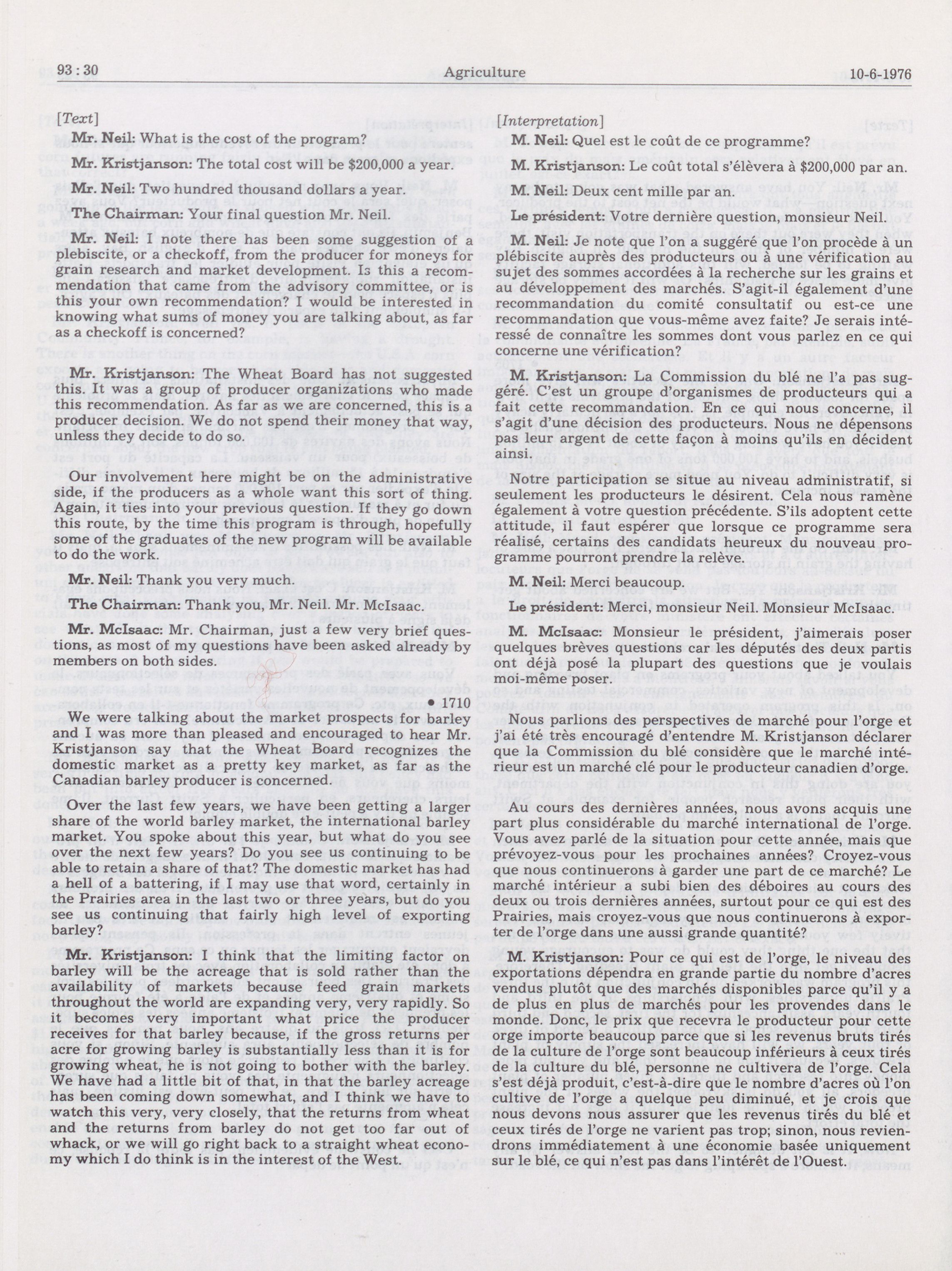 House of Commons Committees, 30th Parliament, 1st Session : Standing Committee on Agriculture, vol. 3 no. 67-93 = Comités de la Chambre des communes, 30e Législature, 1re Session : Comité permanent de l'agriculture, vol. 3 no. 67-93