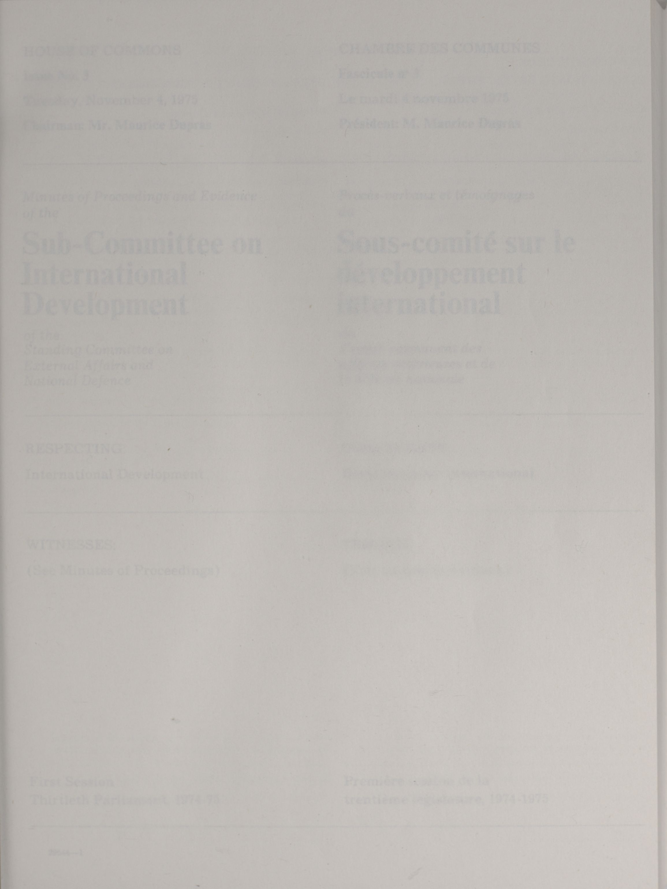 House of Commons Committees, 30th Parliament, 1st Session : Sub-Committee on International Development, vol. 1 = Comités de la Chambre des communes, 30e Législature, 1re Session : Sous-comité sur le développement international, vol. 1