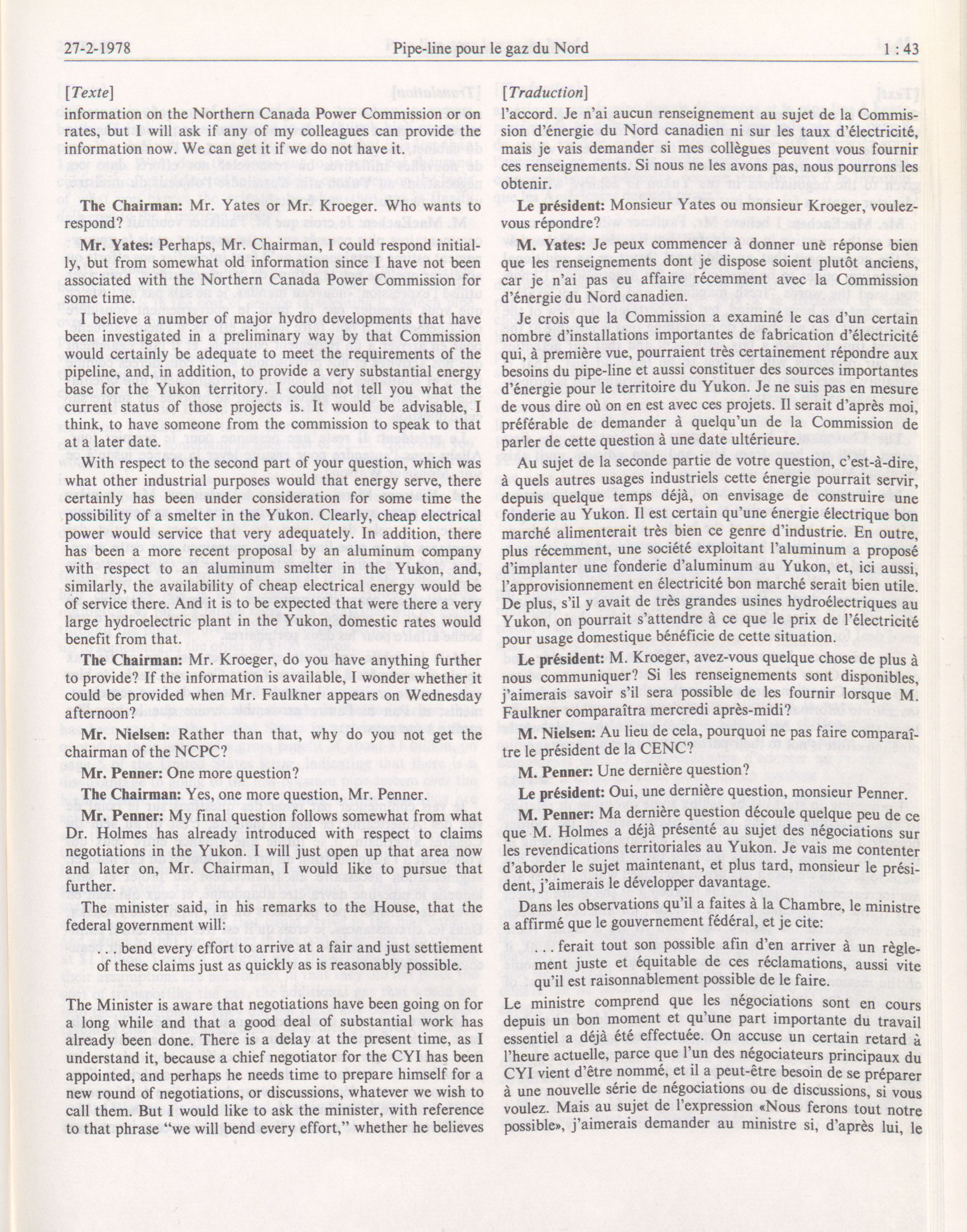 House of Commons Committees, 30th Parliament, 3rd Session : Special Committee on a Northern Gas Pipeline, vol. 1 = Comités de la Chambre des communes, 30e Législature, 3e Session : Comité spécial sur un pipe-line pour le gaz du Nord, vol. 1