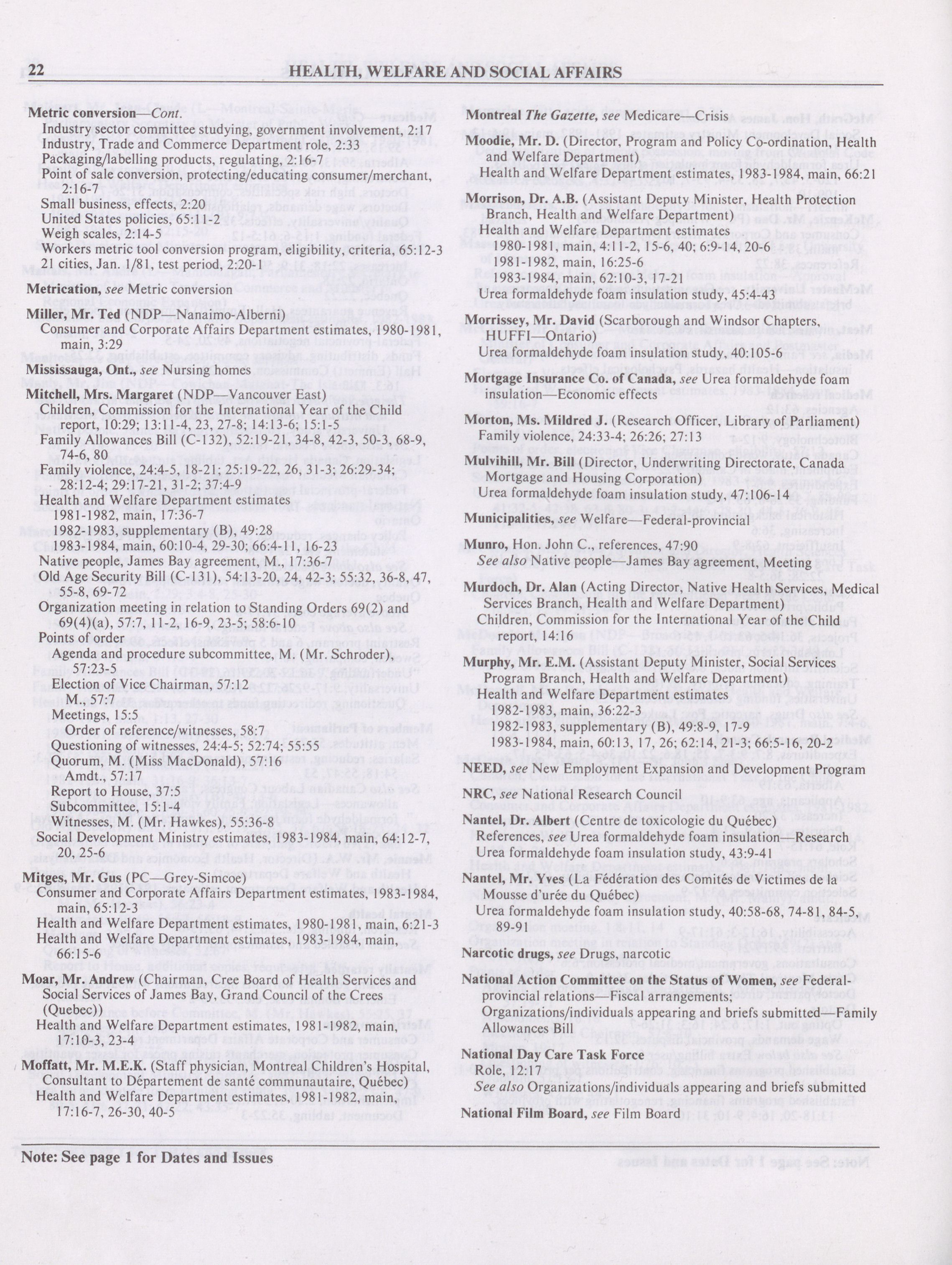 House of Commons Committees, 32nd Parliament, 1st Session : Standing Committee on Health, Welfare and Social Affairs, vol. 4 no. 57-67 = Comités de la Chambre des communes, 32e Législature, 1re Session : Comité permanent de la santé, du bien-être social et des affaires sociales, vol. 4 no. 57-67