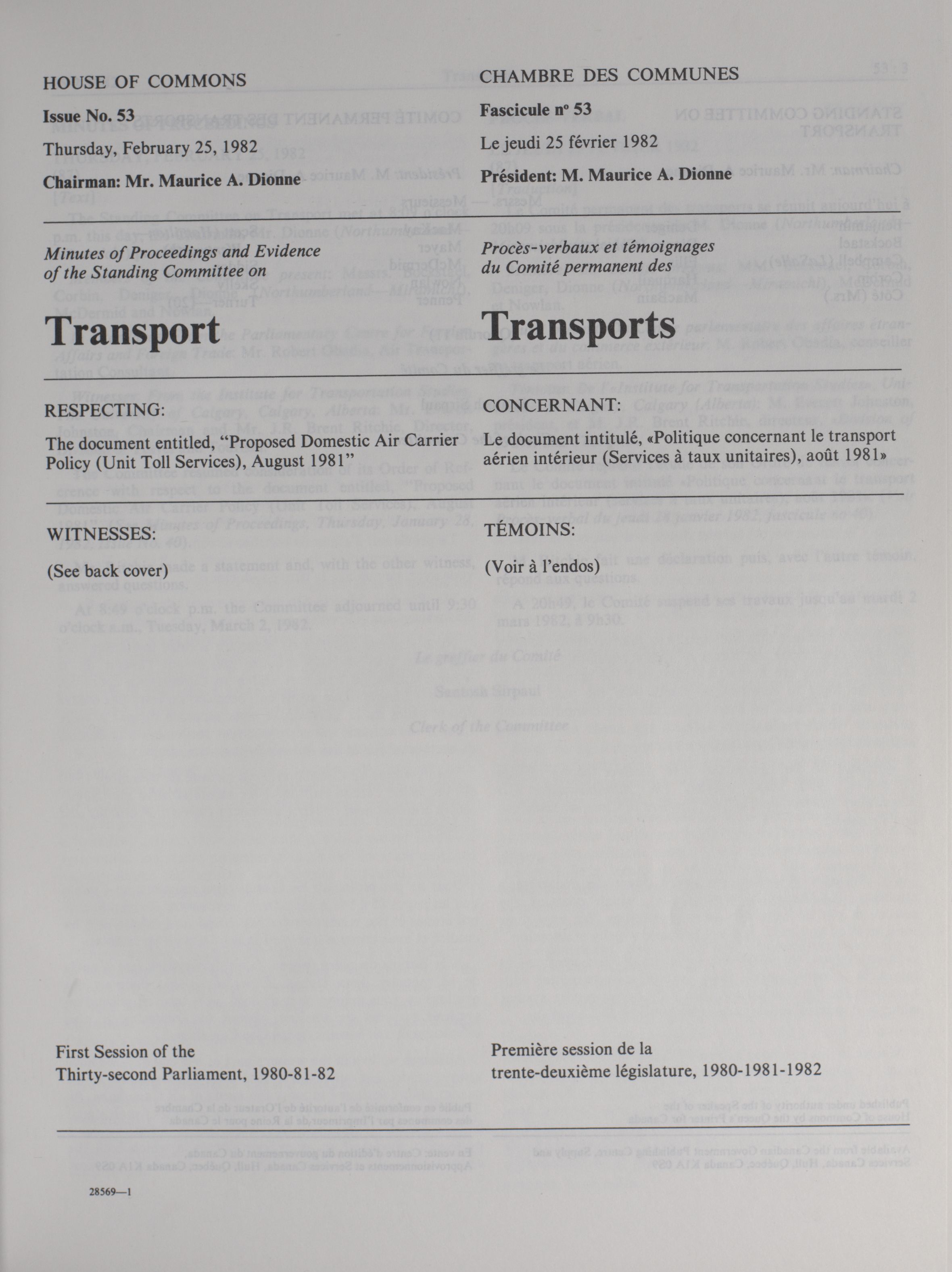 House of Commons Committees, 32nd Parliament, 1st Session : Standing Committee on Transport, vol. 4 no. 40-54 = Comités de la Chambre des communes, 32e Législature, 1re Session : Comité permanent des transports, vol. 4 no. 40-54