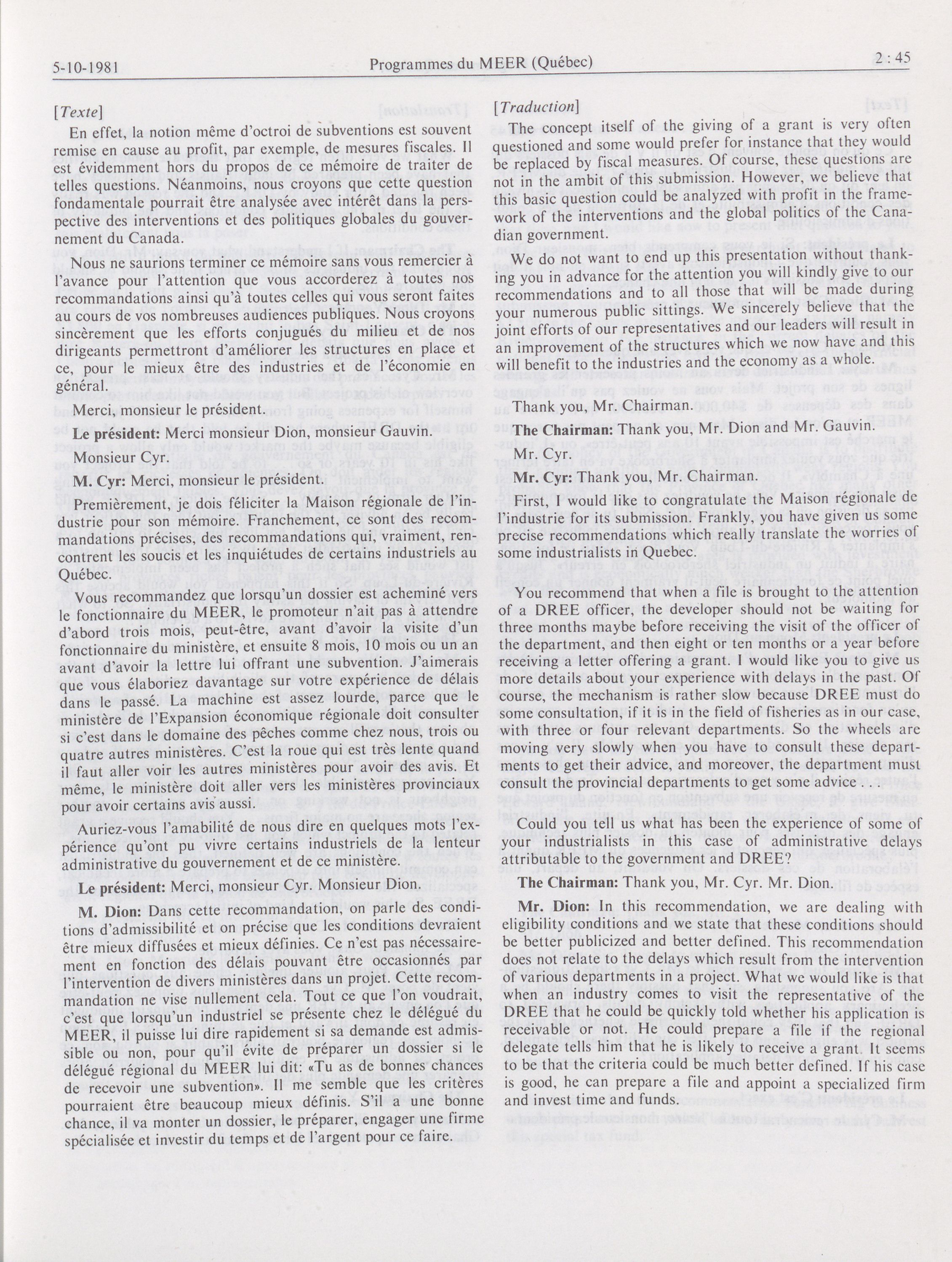 House of Commons Committees, 32nd Parliament, 1st Session : Sub-Committee on DREE Programs (Quebec), vol. 1 = Comités de la Chambre des communes, 32e Législature, 1re Session : Sous-comité des programmes du MEER (Québec), vol. 1