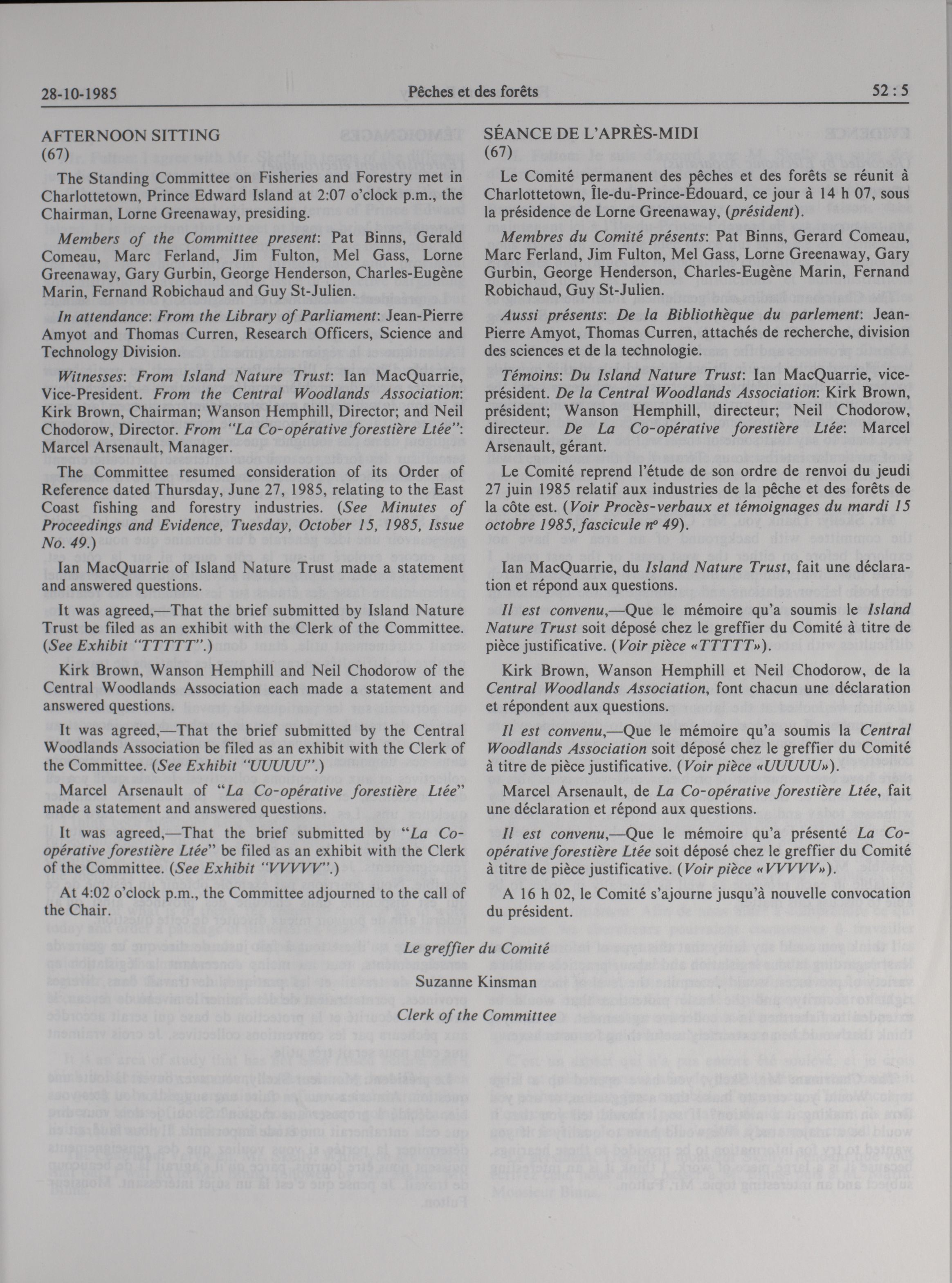 House of Commons Committees, 33rd Parliament, 1st Session : Standing Committee on Fisheries and Forestry, vol. 5 no. 51-57 = Comités de la Chambre des communes, 33e Législature, 1re Session : Comité permanent des pêches et des forêts, vol. 5 no. 51-57